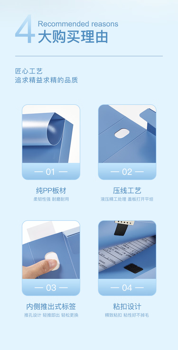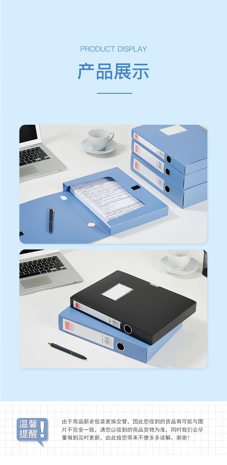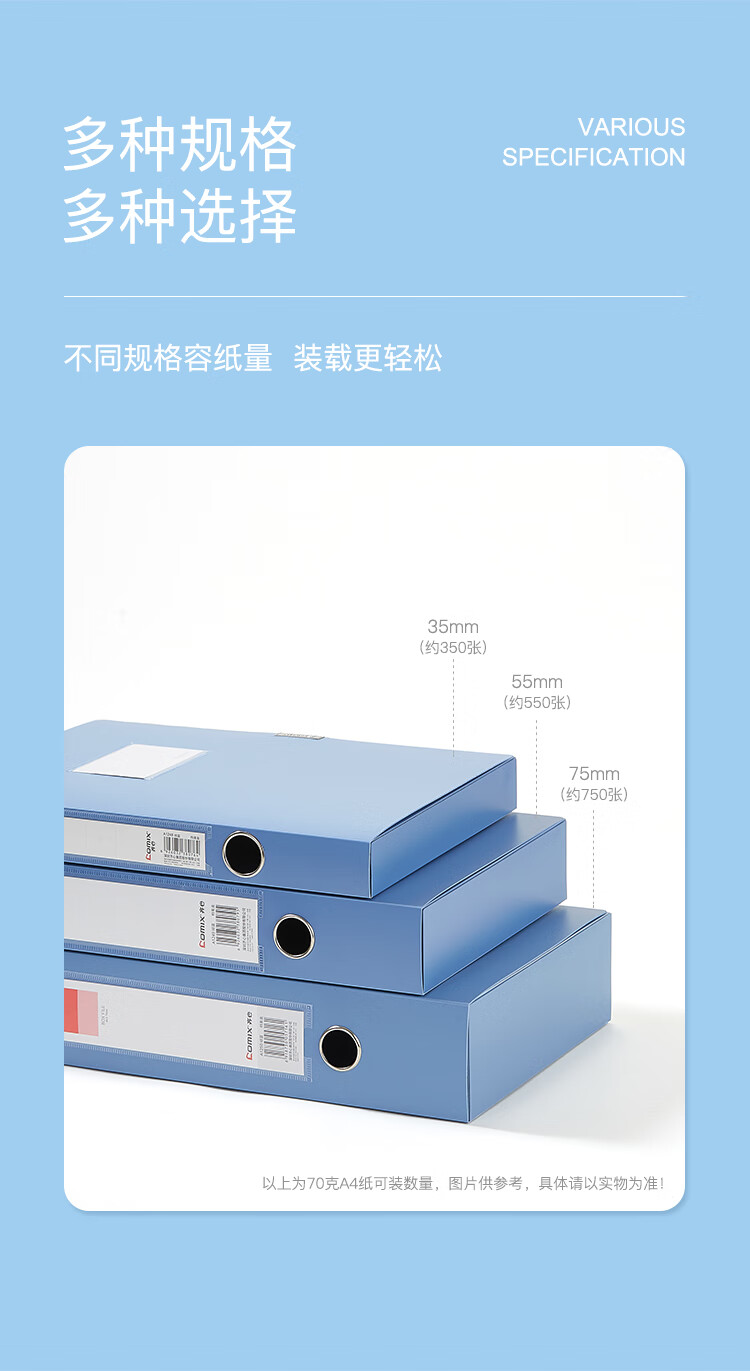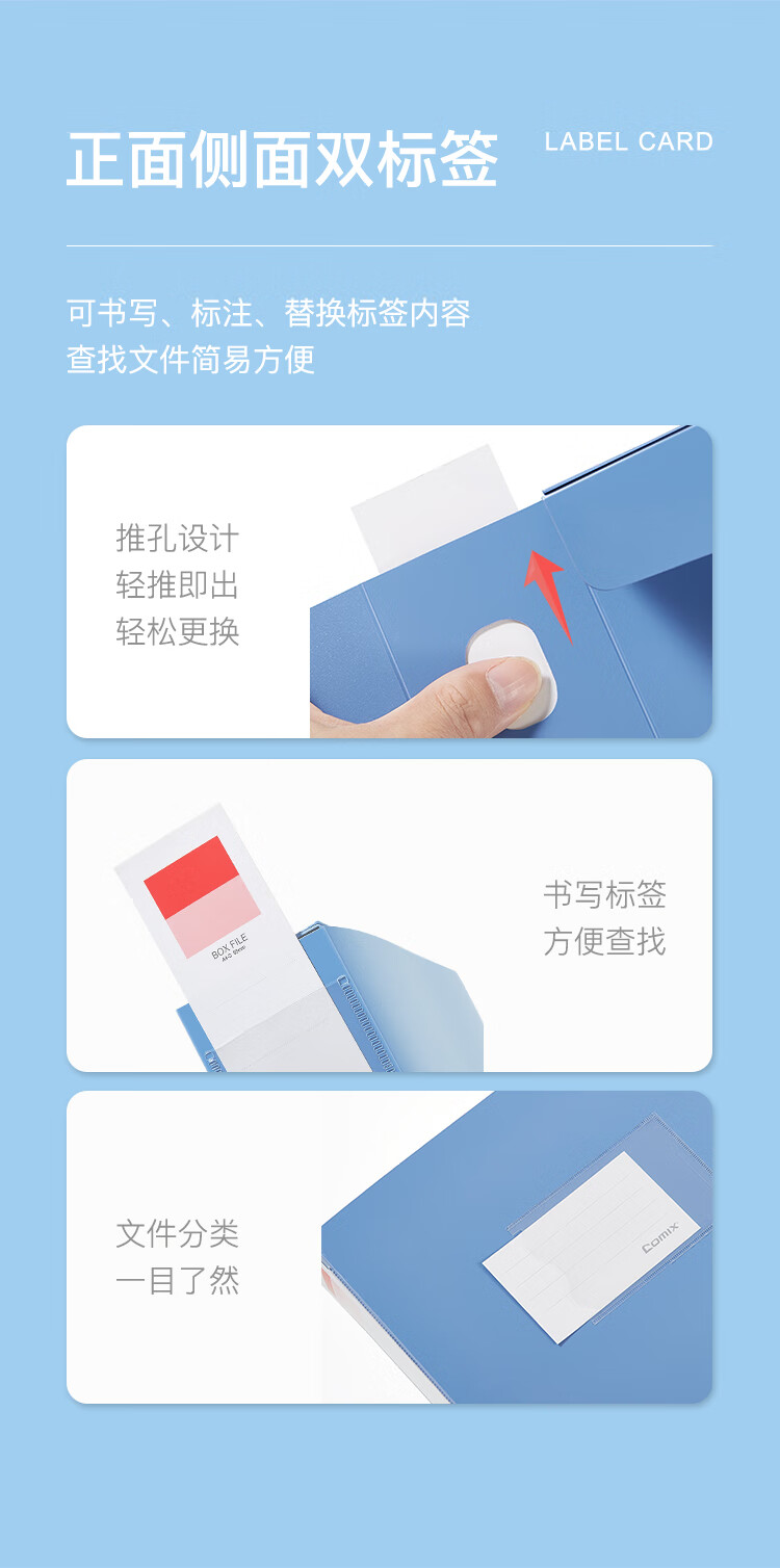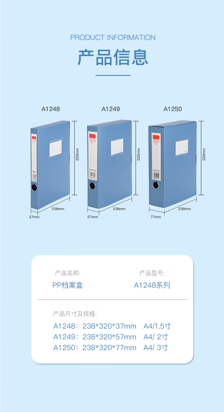 齊心(Comix) 35mm加厚檔案盒/A4文件盒/牢固耐用粘扣資料盒 收納盒 藍(lán)色 辦公用品A1248