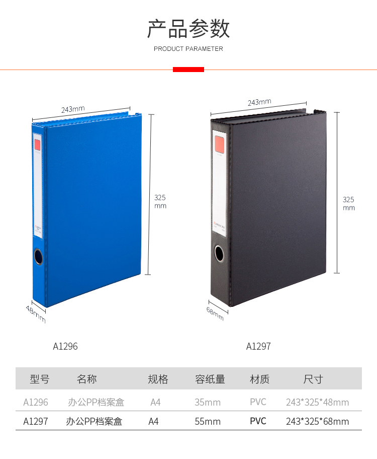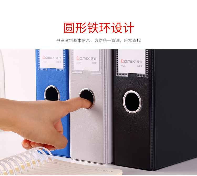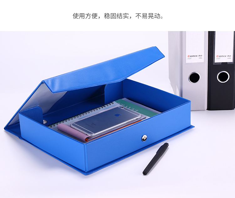 齊心(Comix) 55mm耐用磁扣式檔案盒文件盒A4資料盒 A1297 藍(lán)色 辦公文具
