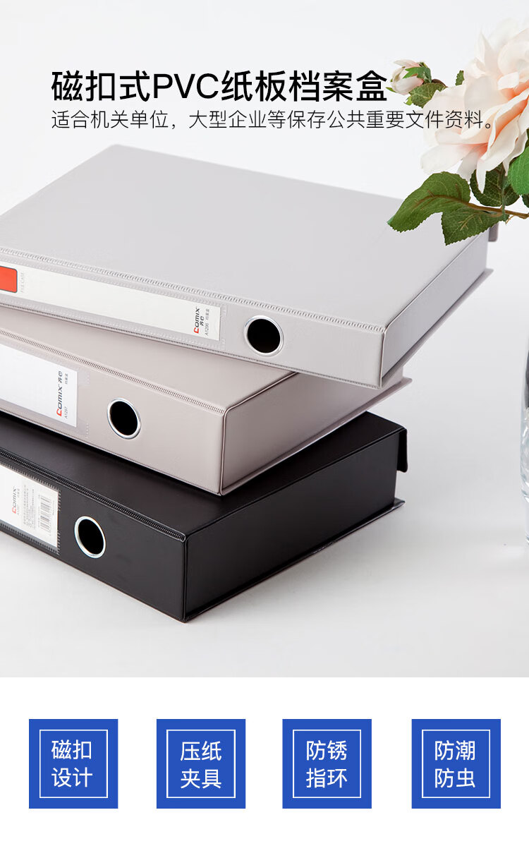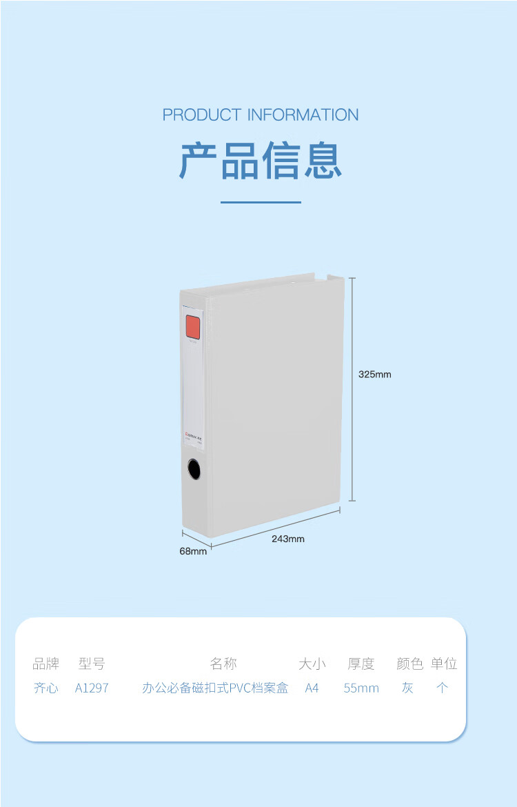 齊心(COMIX)磁扣式檔案盒文件盒資料盒A4 55mm 灰色A1297