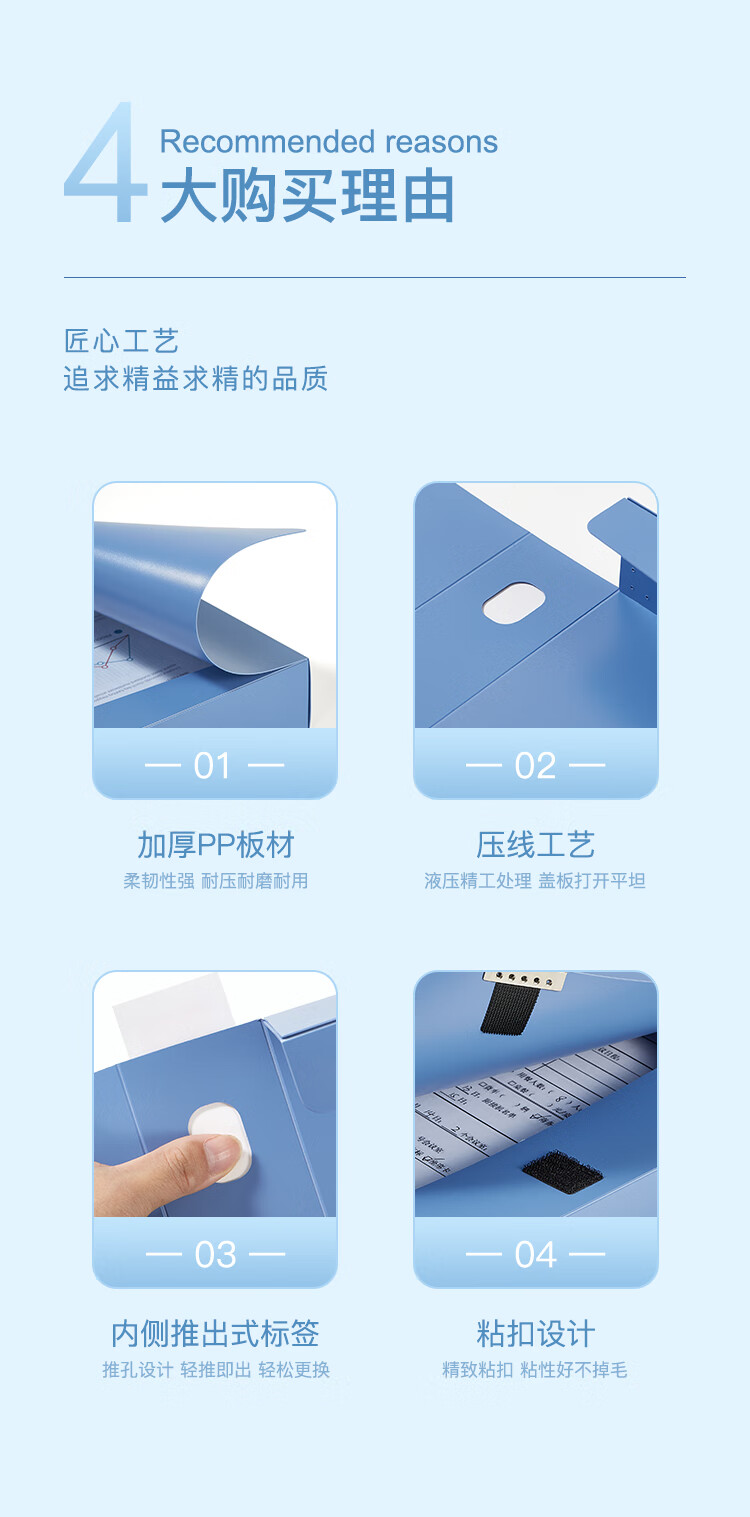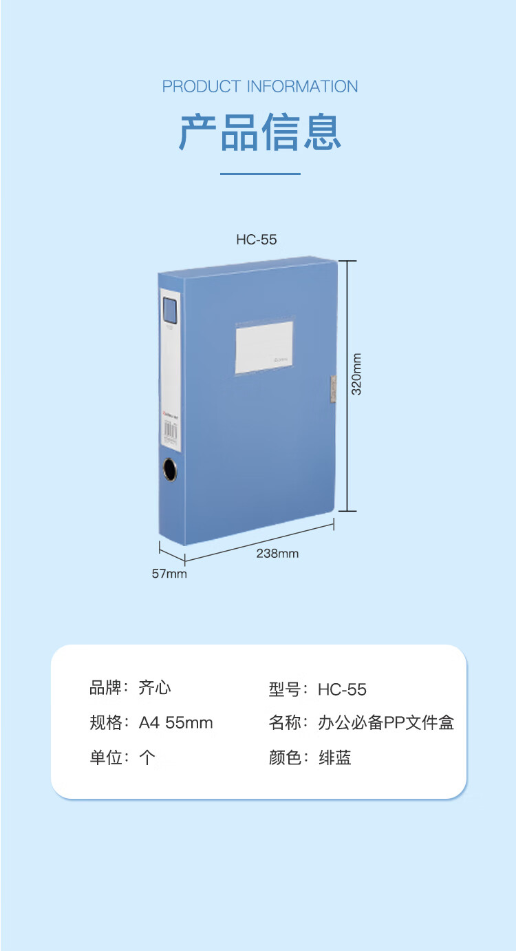 齊心(Comix) 1個裝 55mm加厚檔案盒 HC-55 板材厚度1mm A4文件盒 加厚粘扣資料盒 藍(lán)色