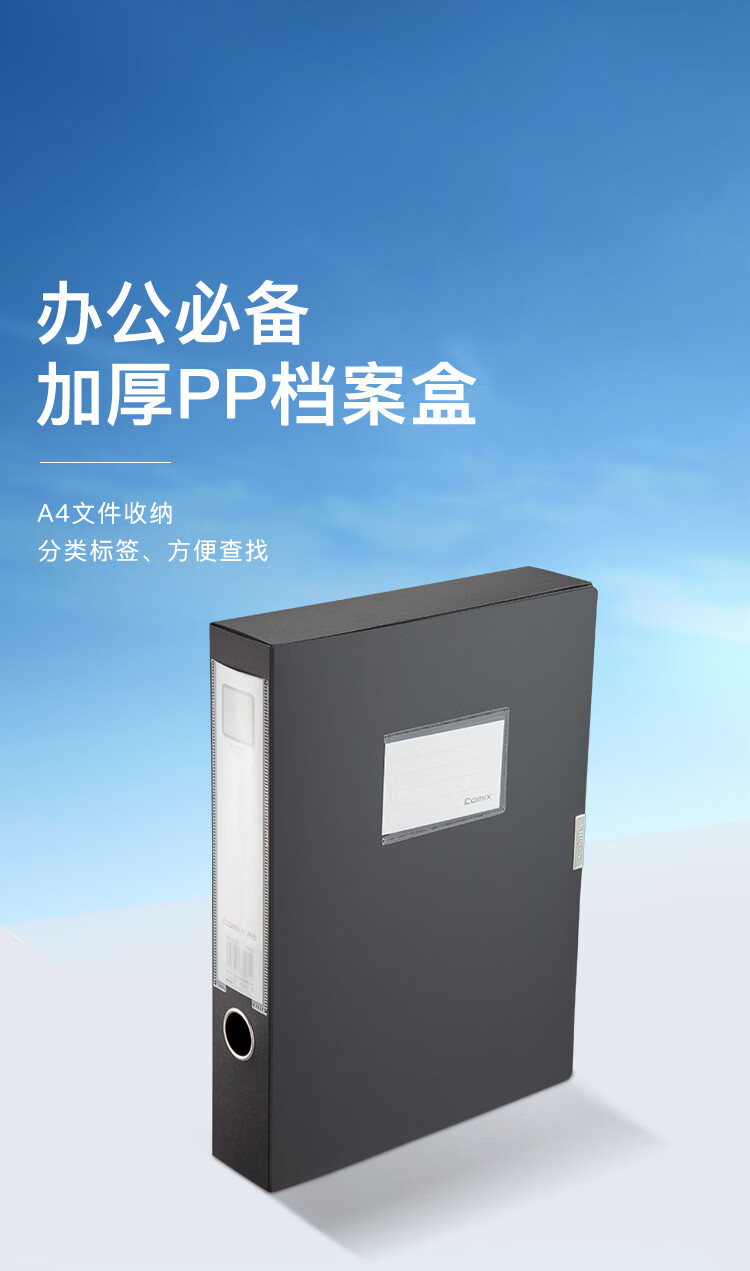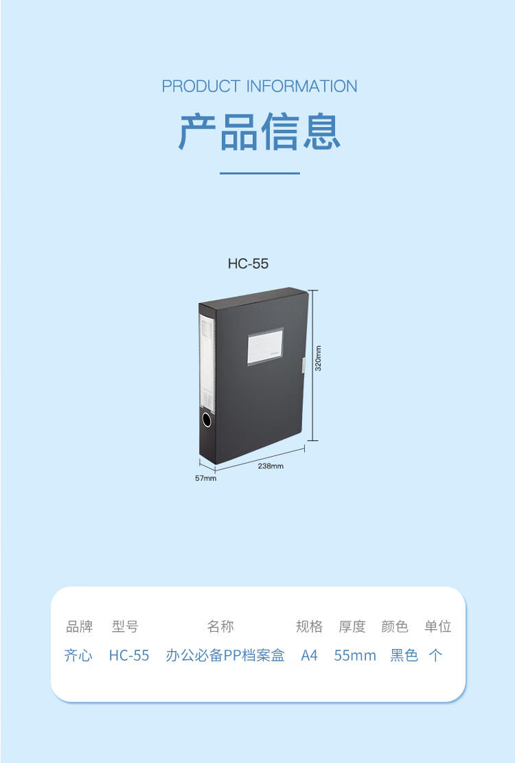 齊心(Comix) 1個(gè)裝 55mm加厚型PP檔案盒資料盒 A4 HC-55 黑色