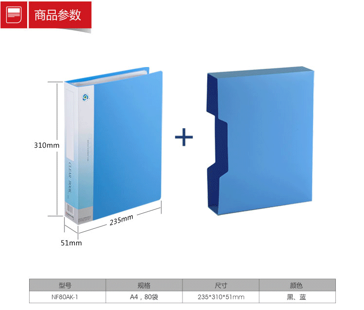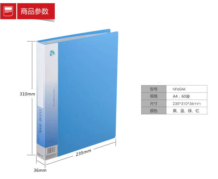 齊心 NF40AK資料冊(cè)A4紙商務(wù)辦公學(xué)生文件檔 A4 40頁(yè)內(nèi)袋 黑色