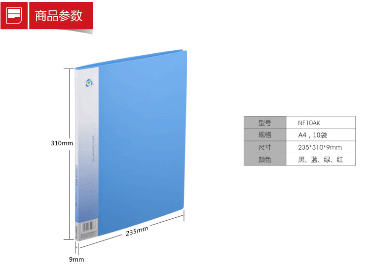 齊心 NF100AK-1 資料冊A4紙商務辦公學生文件檔 A4 100頁內(nèi)袋 黑色