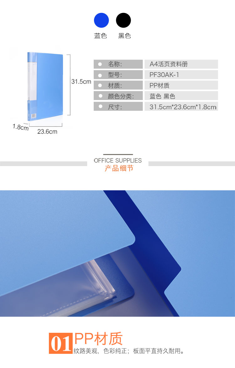 齊心(Comix) PF30AK 30頁A4資料冊文件頁文件夾 藍(lán)色 辦公文具