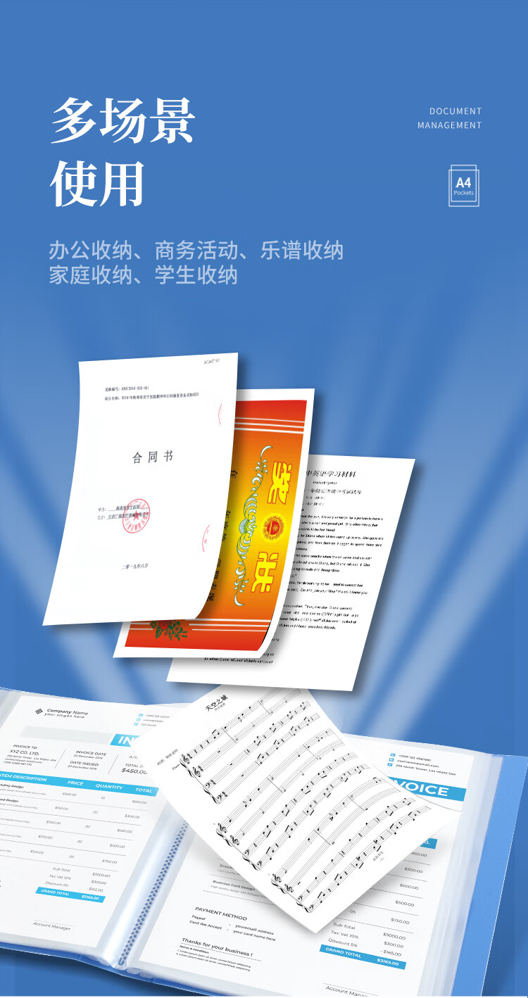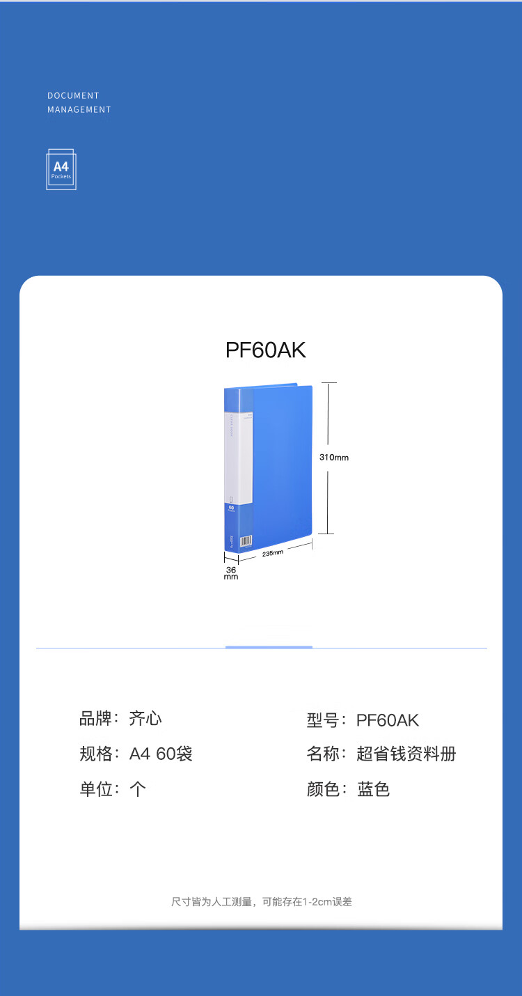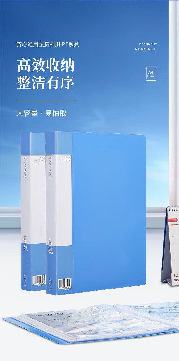 齊心 PF60AK 透明插頁(yè)袋資料冊(cè)A4 60頁(yè)內(nèi)袋 藍(lán)色
