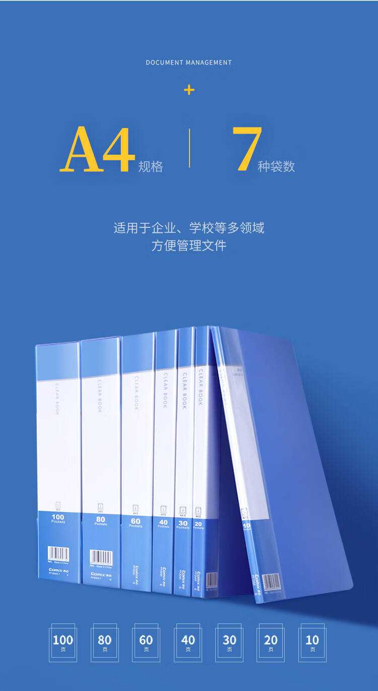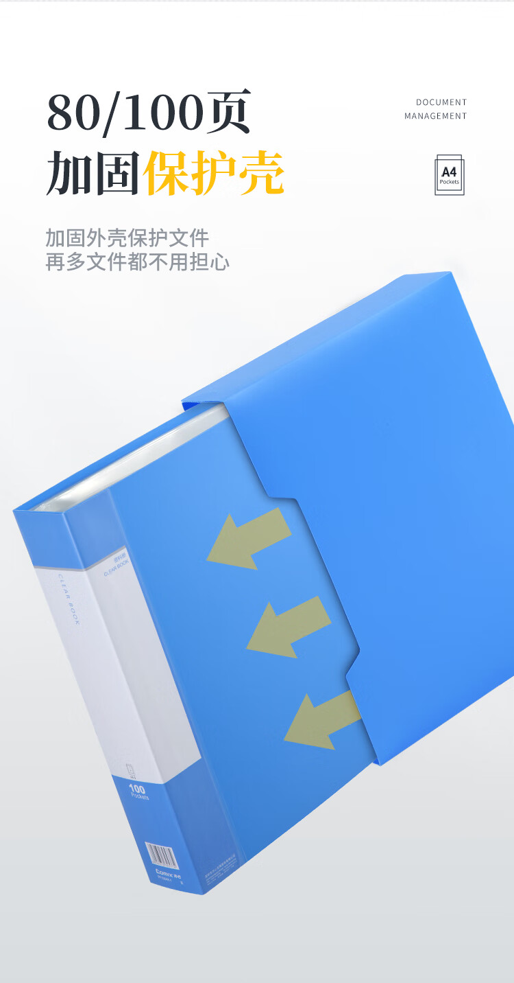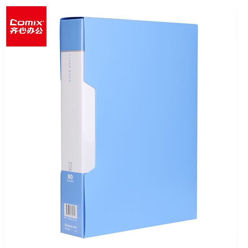 齊心 PF80AK-1 透明插頁袋資料冊A4 80頁內(nèi)袋 藍色