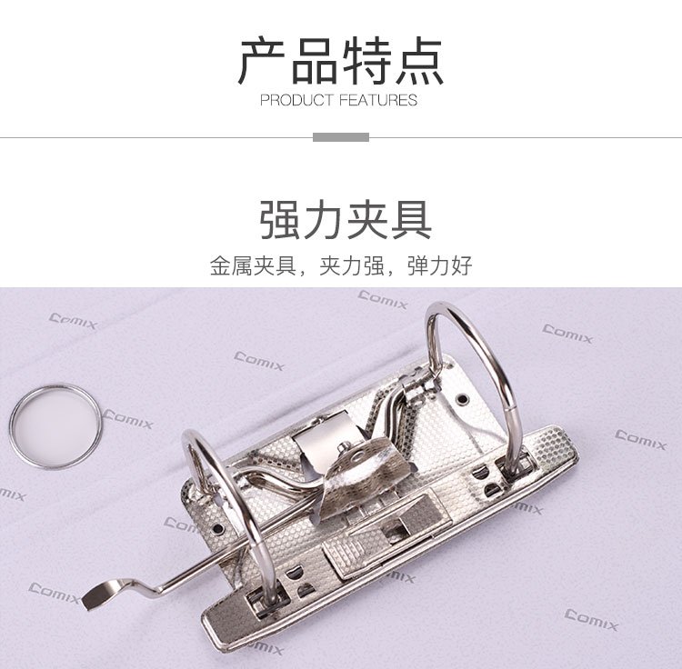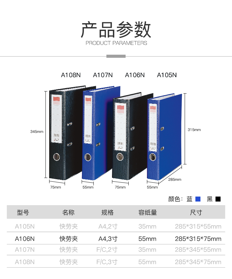 齊心(Comix) 2寸加厚歐式快勞夾A4文件夾帶孔資料夾兩孔活頁夾背寬55mm容紙寬度35mm 辦公文具A105N 黑色