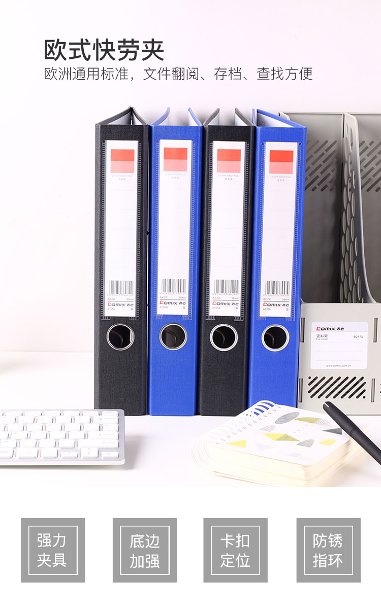 齊心(Comix) 3寸加厚歐式快勞夾A4文件夾帶孔資料夾兩孔活頁夾背寬75mm夾紙寬度55mm 黑色 A106N