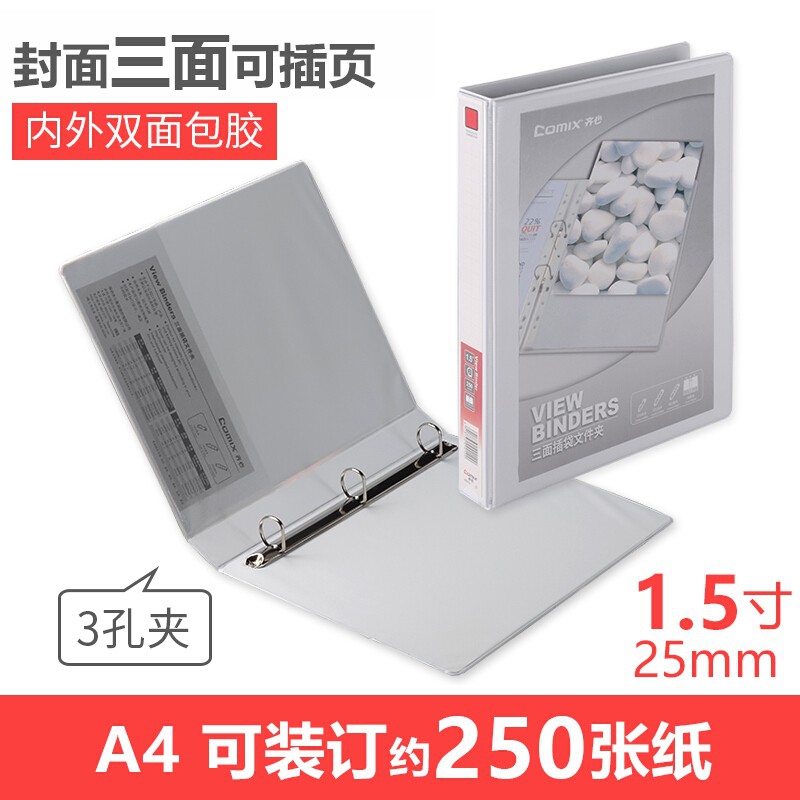 齊心(COMIX)快勞夾A4打孔文件夾三面插頁(yè)活頁(yè)夾 1.5寸3孔A0213(可裝250頁(yè)A4紙)