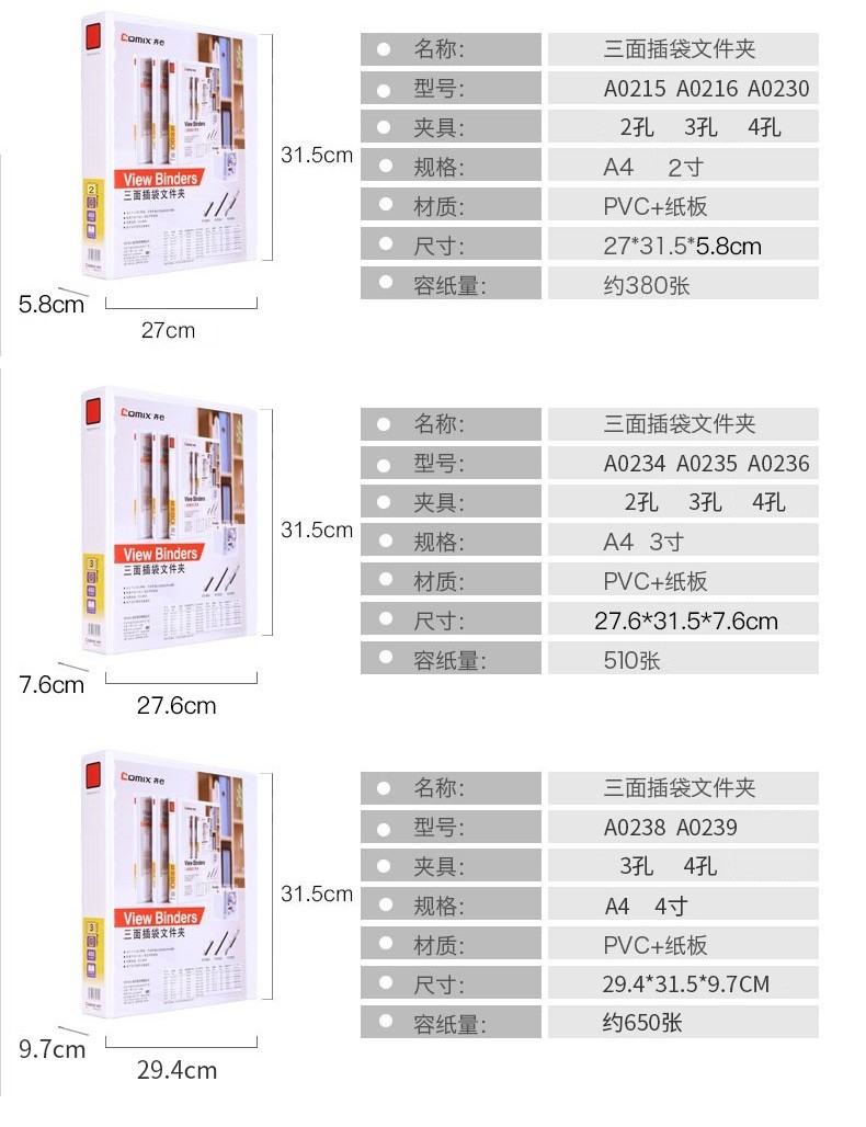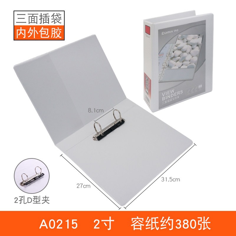 齊心(COMIX)快勞夾A4打孔文件夾三面插頁(yè)活頁(yè)夾 2寸2孔A0215(可裝380頁(yè)A4紙)