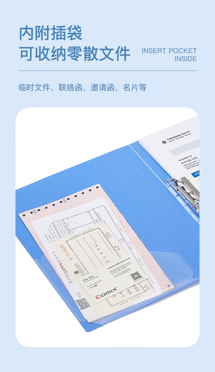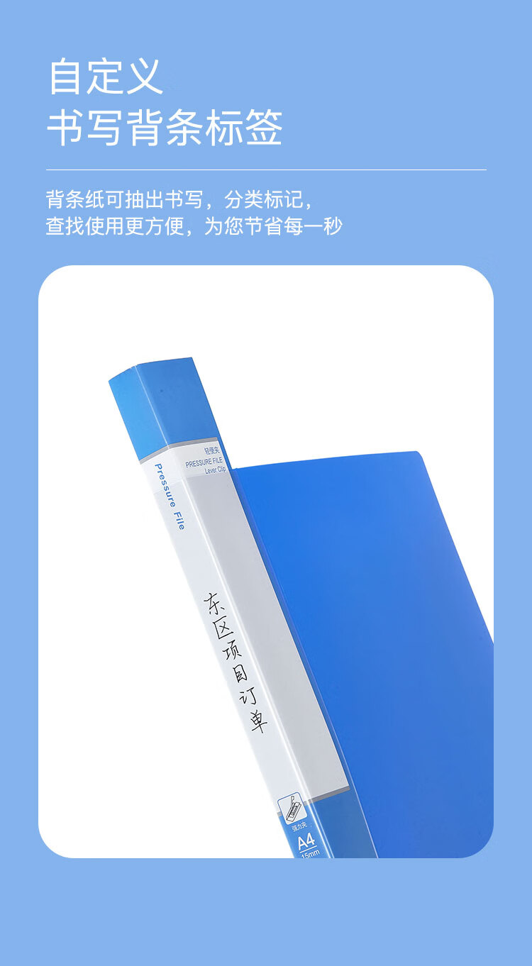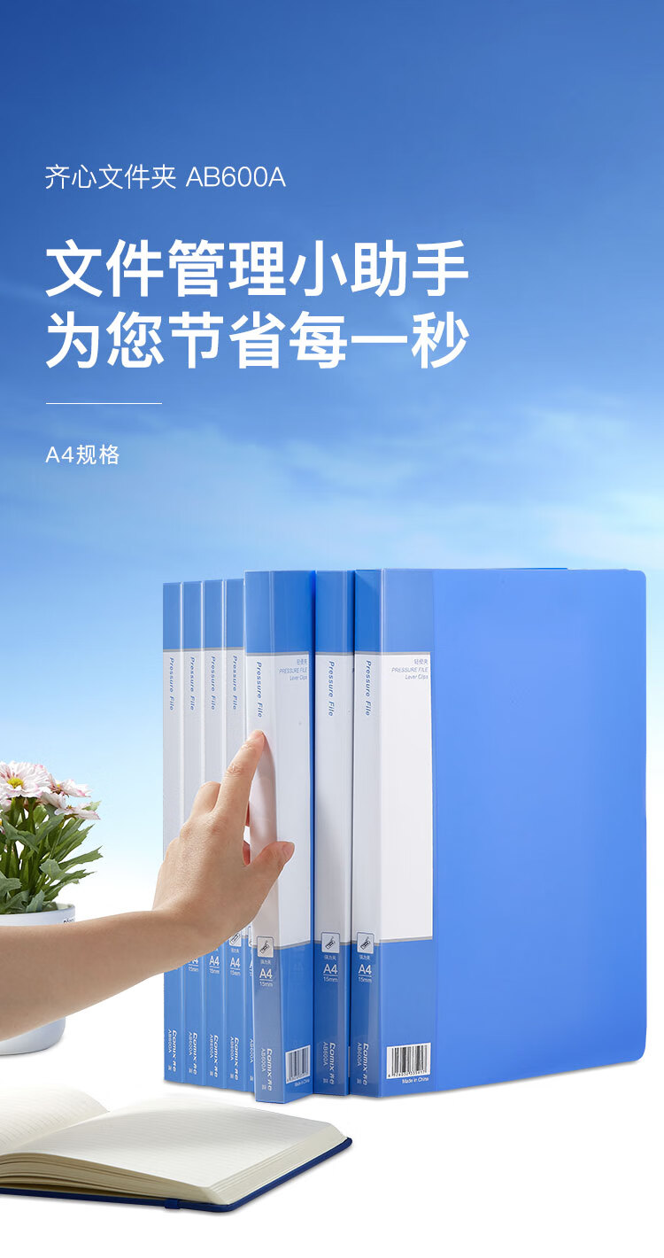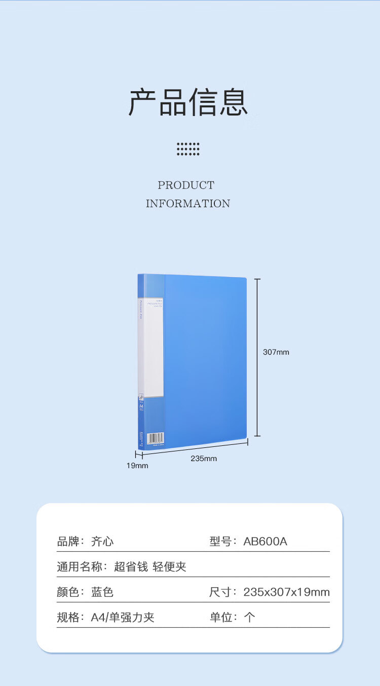 齊心(Comix) 單強力夾+插頁 A4文件夾 資料夾 藍色 AB600A