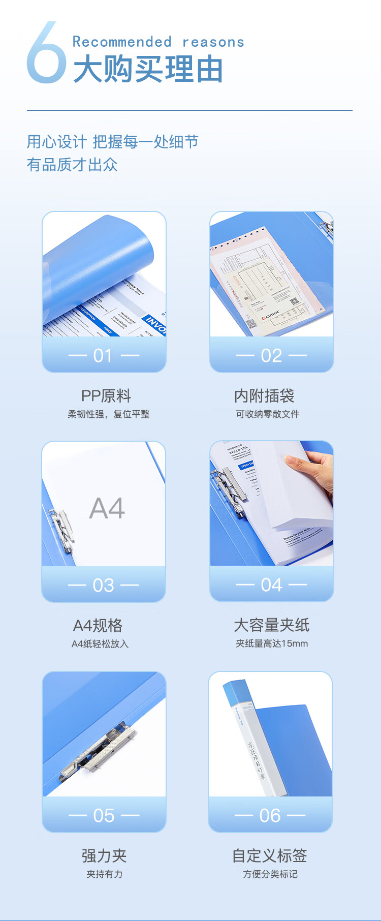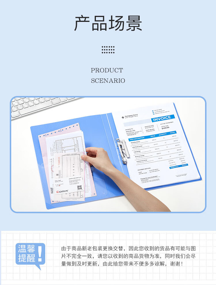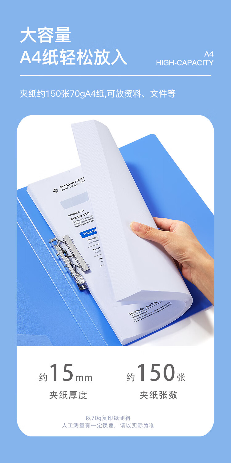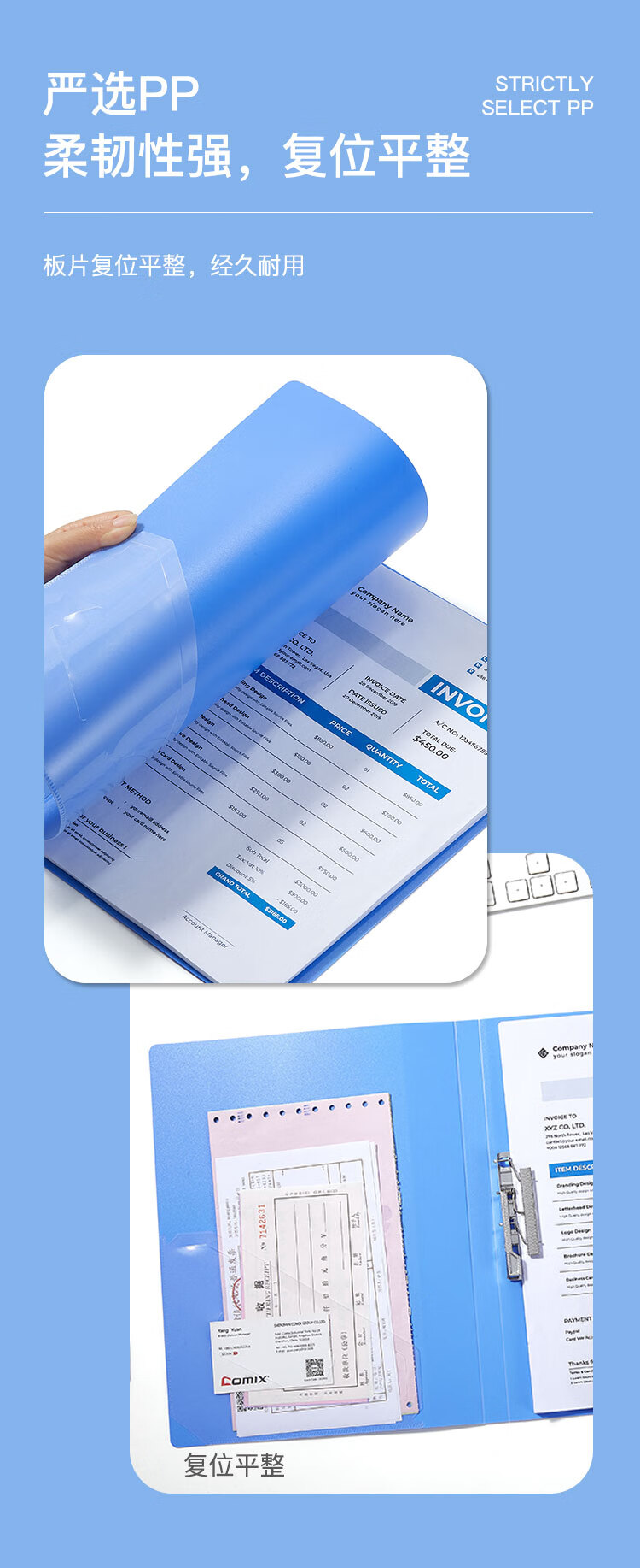 齊心(Comix) 單強力夾+插頁 A4文件夾 資料夾 藍色 AB600A