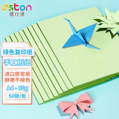 德仕通 A4/80g彩色復(fù)印紙 50張/包 淺綠色 DIY手工折紙彩色打印紙 兒童手工紙 卡紙