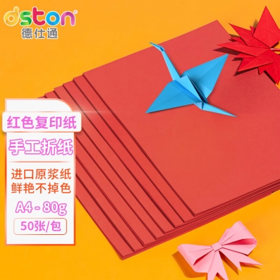 德仕通 A4/80g彩色復(fù)印紙 50張/包 紅色 DIY手工折紙彩色打印紙 兒童手工紙 卡紙