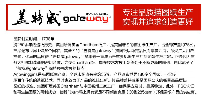 蓋特威 半透明天然描圖紙硫酸紙 工程繪圖紙復(fù)印拷貝紙臨摹紙繪圖儀打印紙 2寸管芯 73克【900mm*70m】1卷