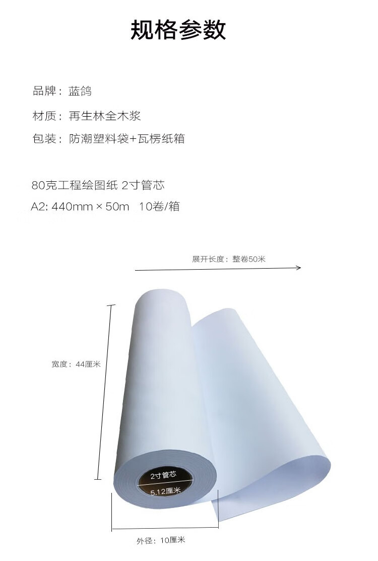 藍(lán)鴿 工程CAD繪圖紙 80克 畫畫 涂鴉 A012 A2 80克 440mm*50米 卷