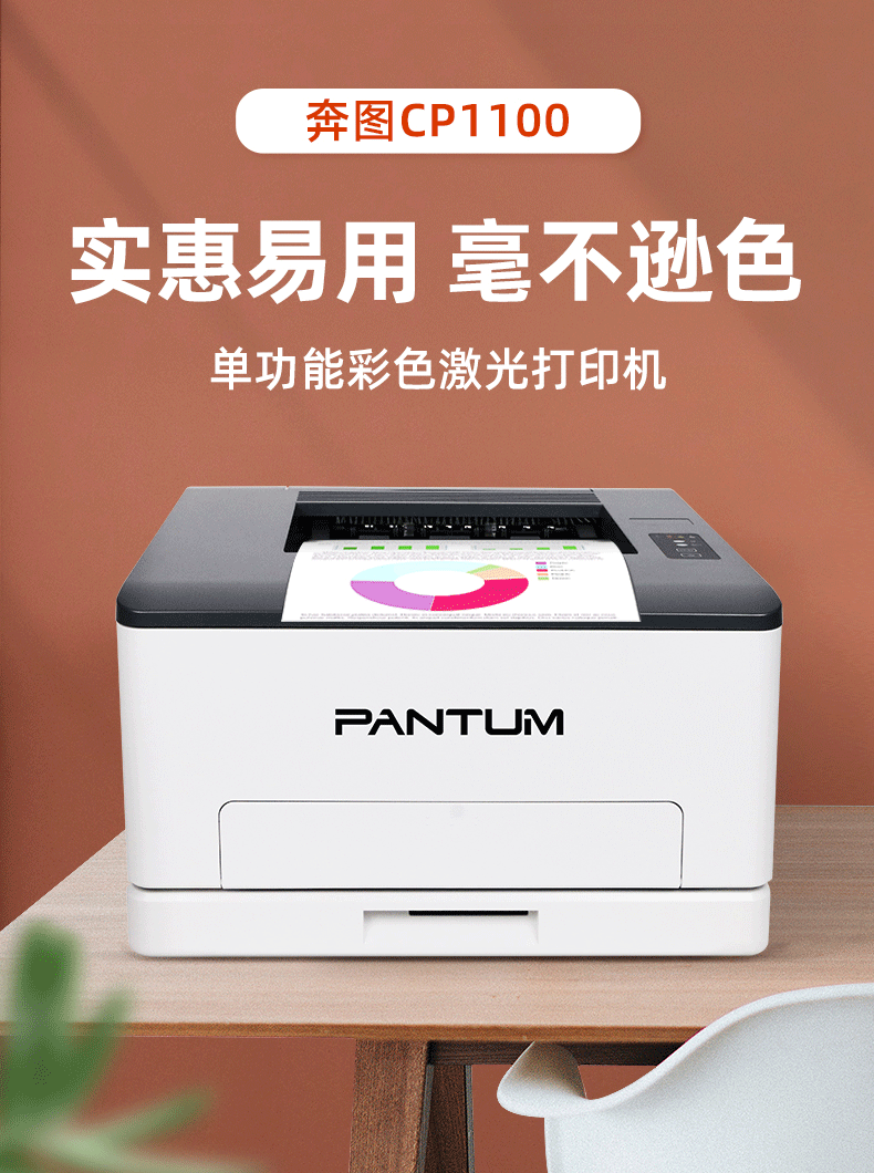 奔圖(PANTUM)CP1100 A4彩色激光單功能家用打印機 家庭作業(yè)照片小型打印機