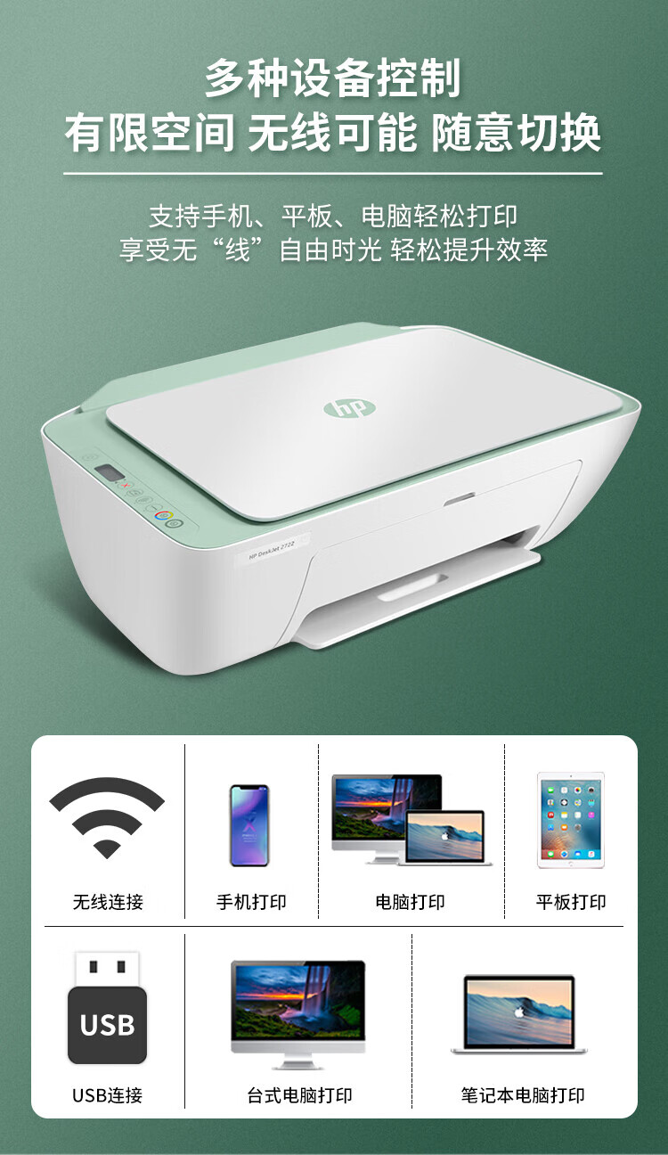 HP惠普2722彩色多功能?chē)娔蛴C(jī)小型商用學(xué)生復(fù)印掃描打印一體機(jī)
