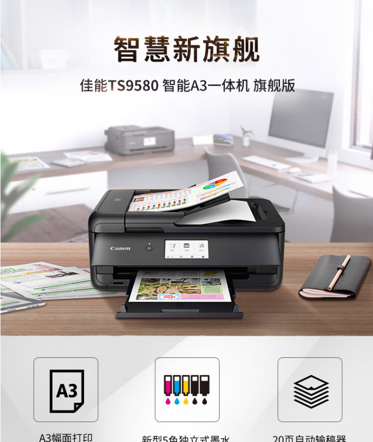 佳能 TS9580 無線彩色噴墨A3照片打印機(jī)復(fù)印掃描小型一體機(jī)
