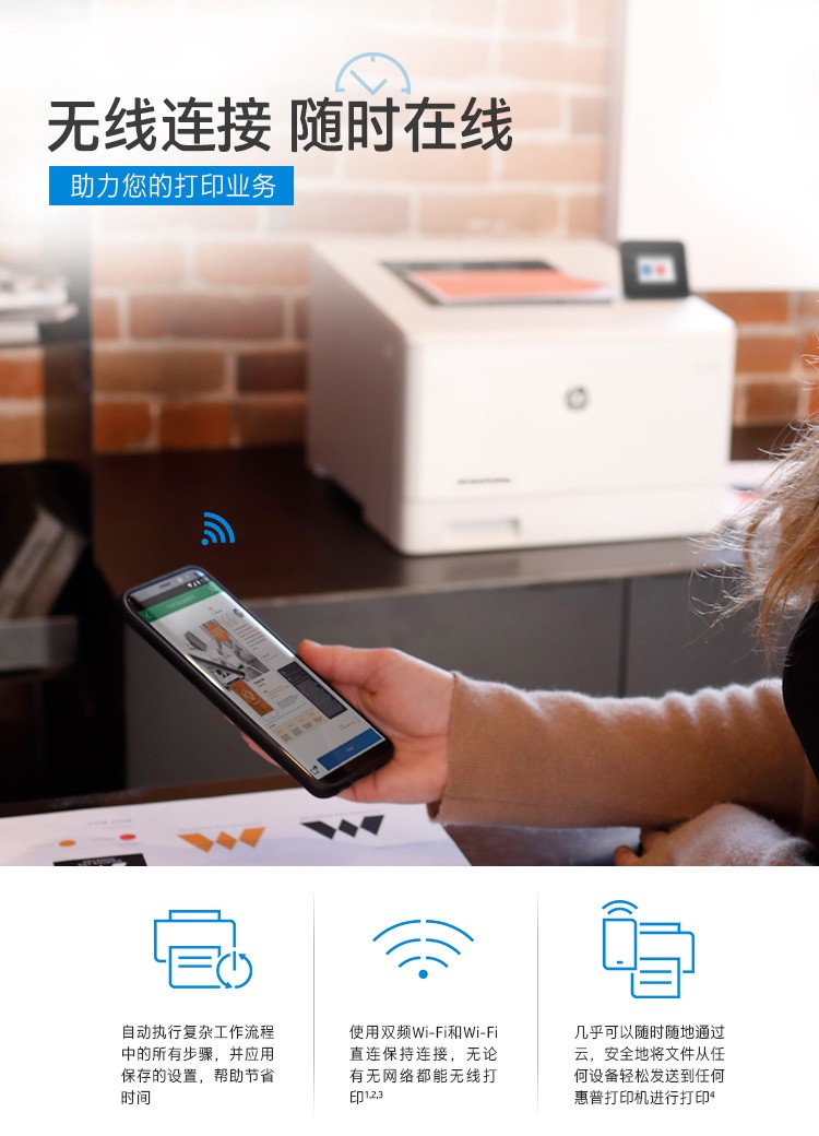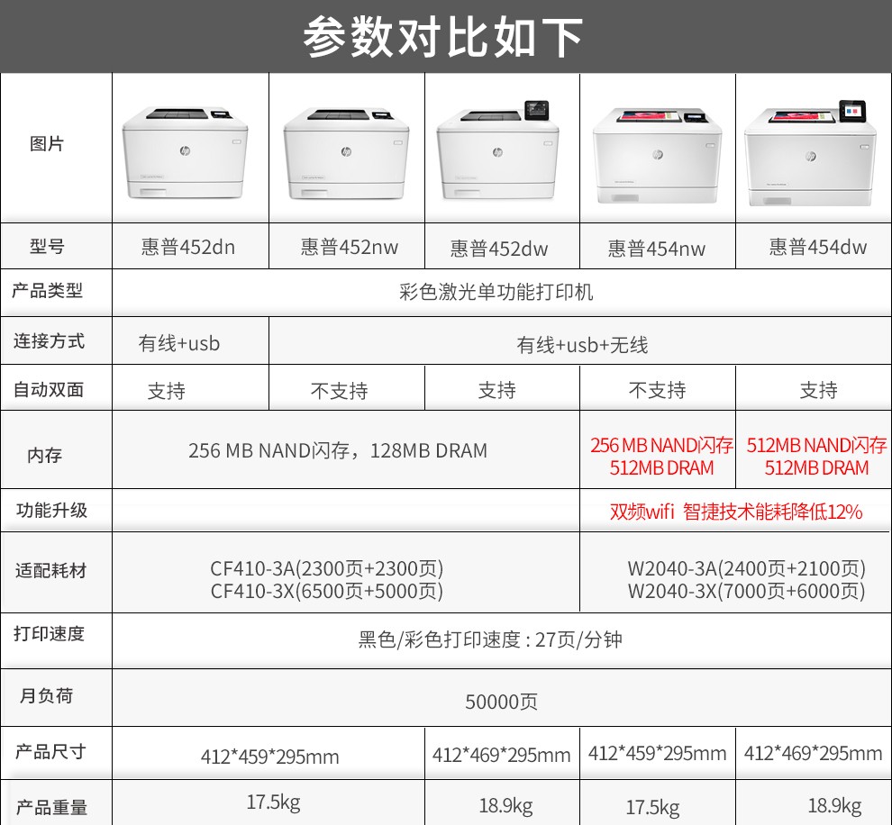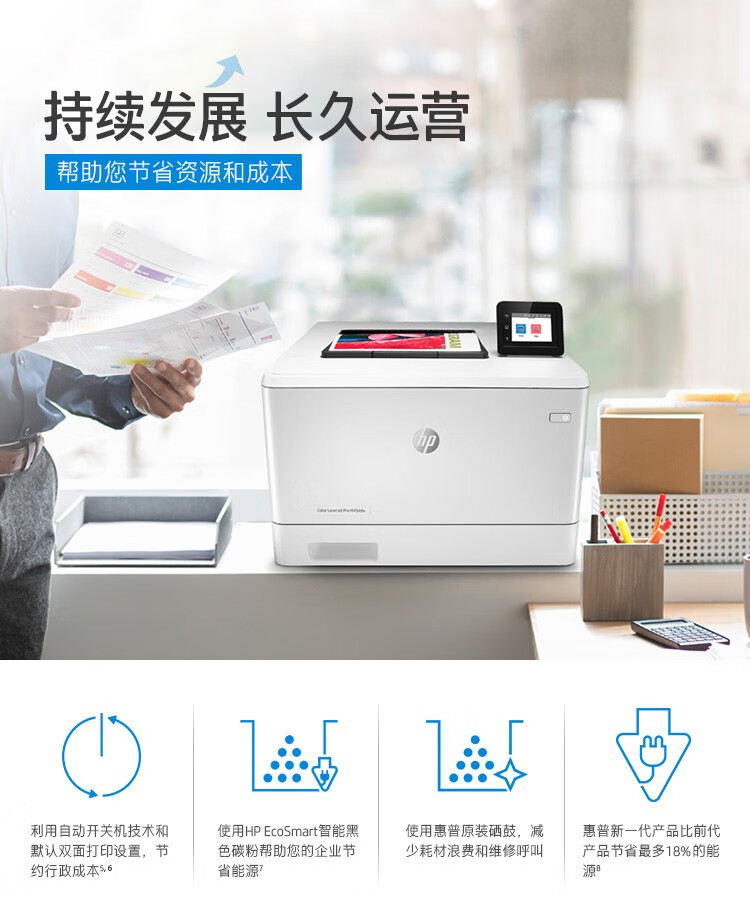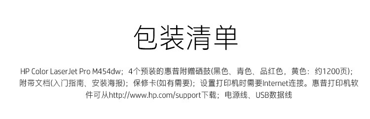 惠普(HP) 打印機(jī) 454dw a4彩色激光家用無線/有線 單打印 (自動(dòng)雙面+有線+無線)