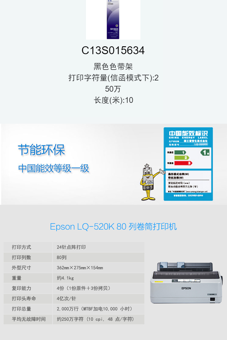 愛普生(EPSON) LQ-520K 80列票據(jù)打印機 針式打印機