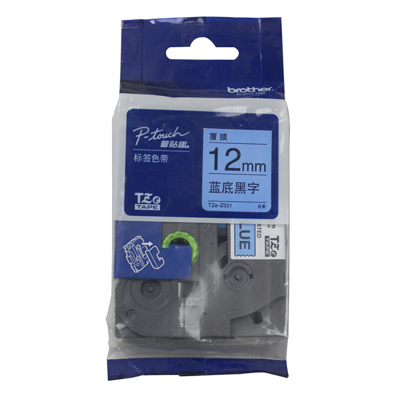 兄弟(brother)TZE-531標(biāo)簽機(jī)色帶原裝標(biāo)簽打印機(jī)標(biāo)簽帶標(biāo)簽紙12mm寬度(適用所有PT系列) 藍(lán)底黑字