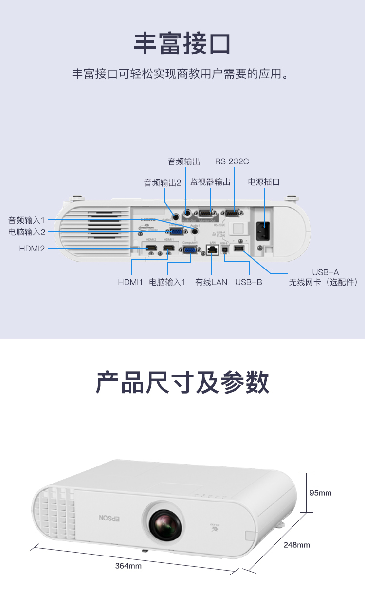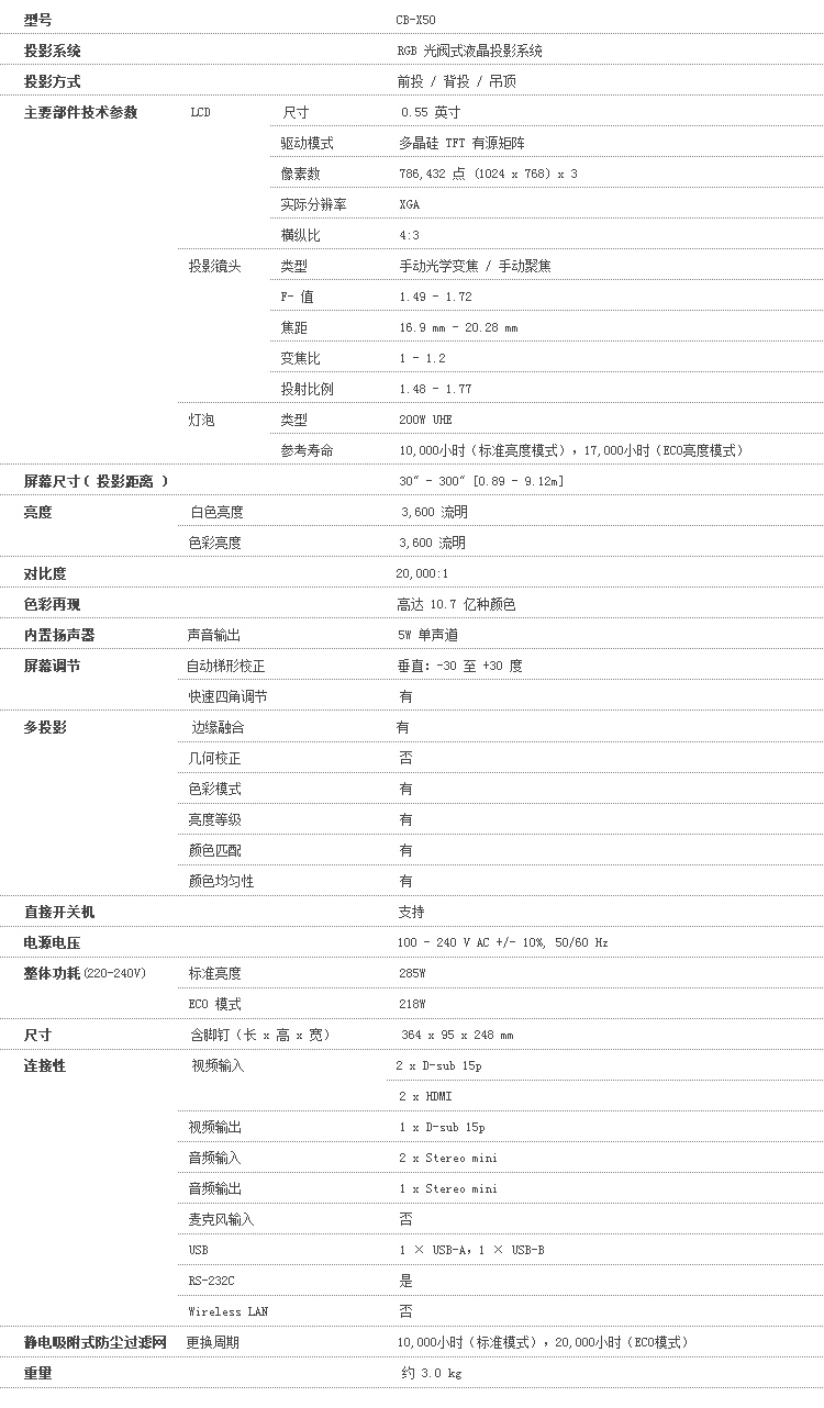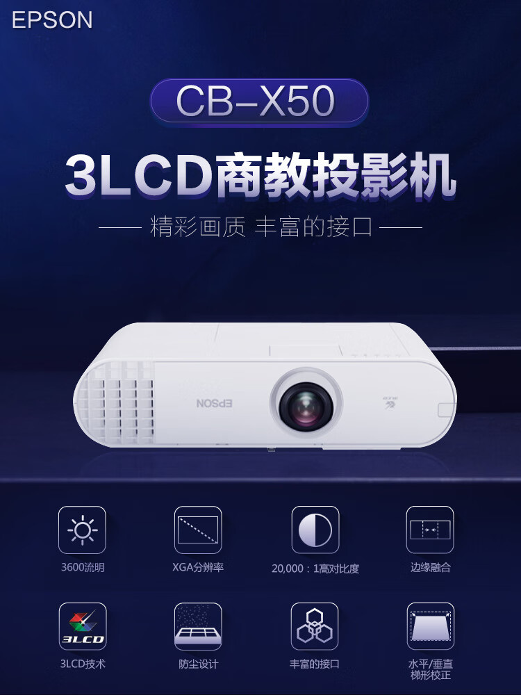 愛普生(EPSON)CB-X50 3LCD商教投影機 投影儀 (3600流明/XGA/內(nèi)置邊緣融合投影功能)【標(biāo)配】