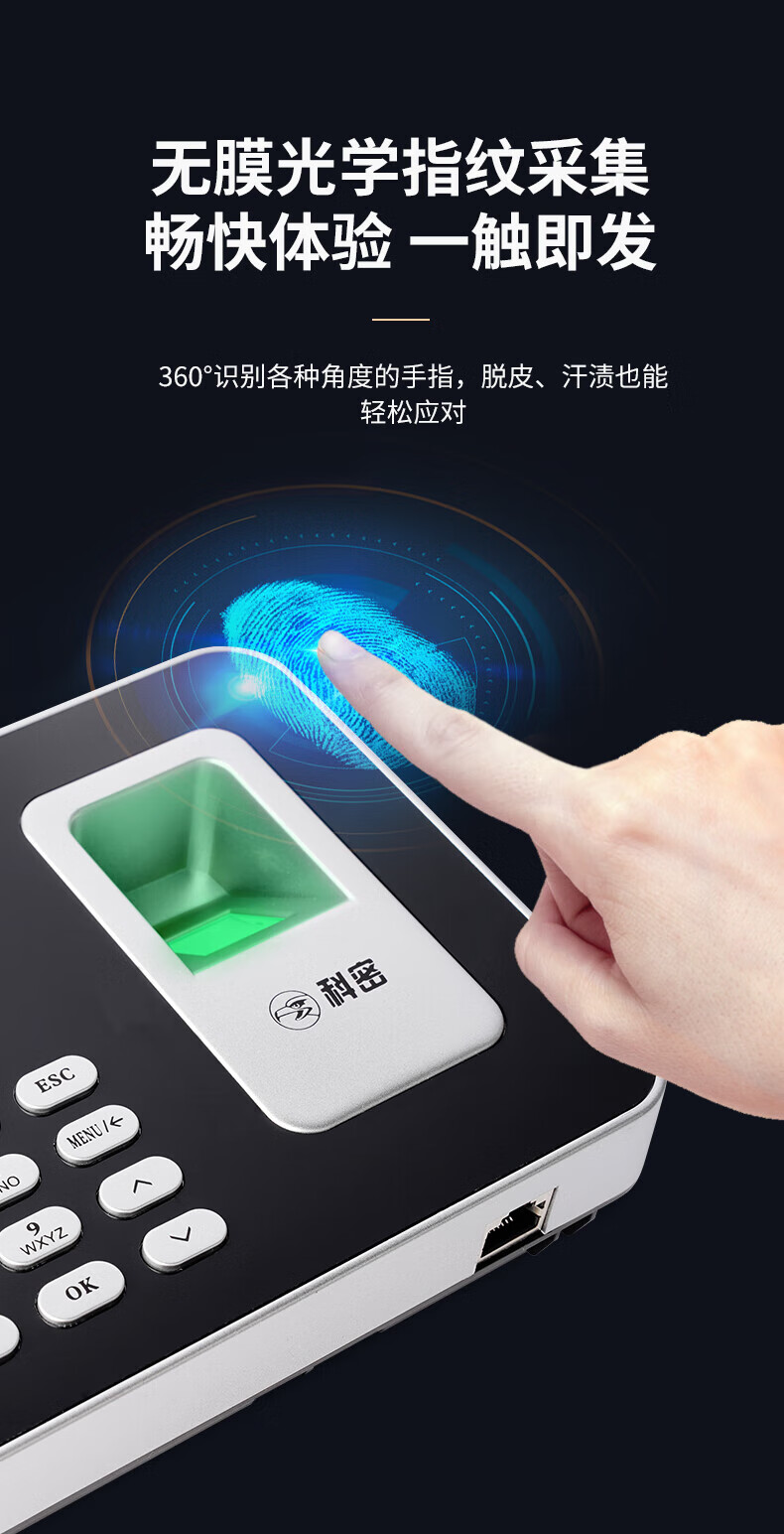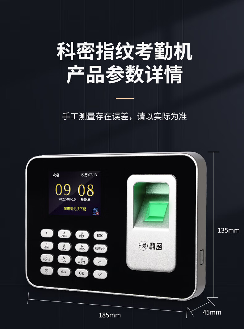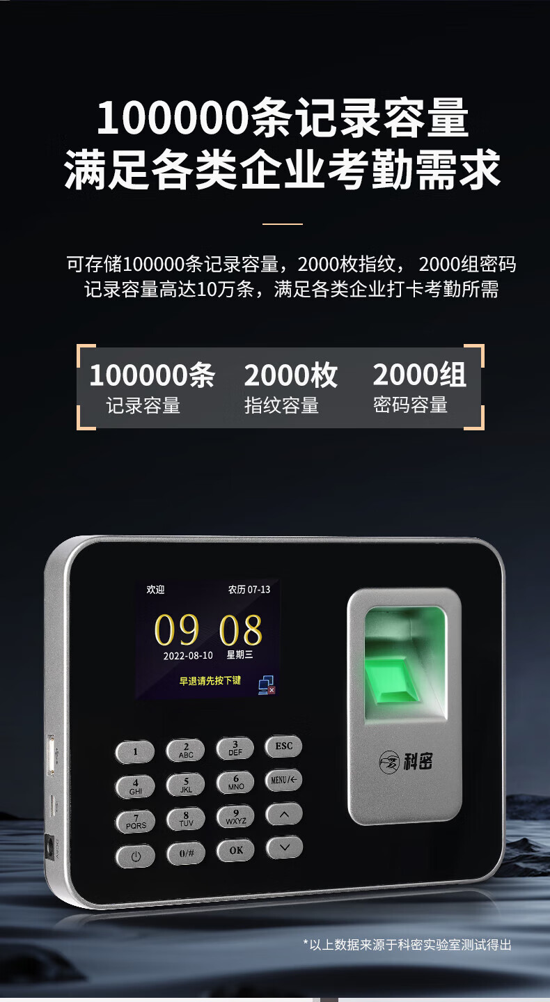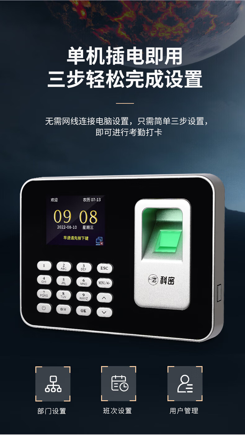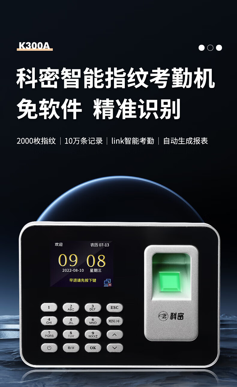 科密指紋識別考勤機(jī)免軟件彩屏指紋考勤機(jī)打卡機(jī)卡鐘自動生成報表K300A 彩屏指紋智能平臺2000指紋