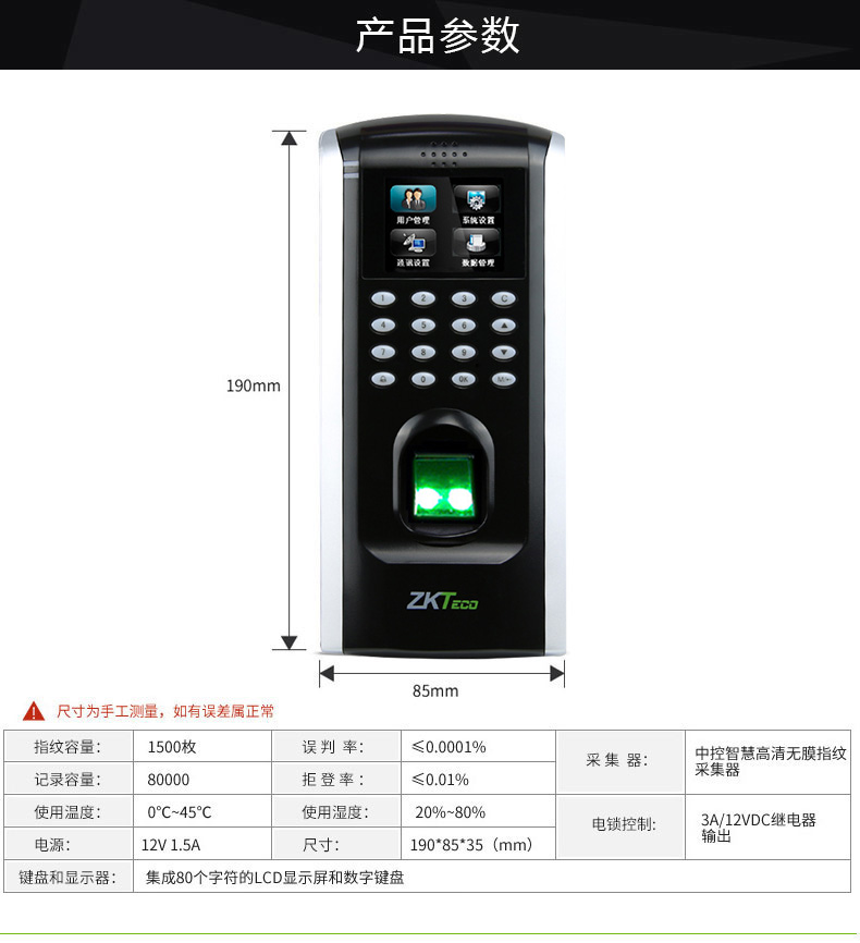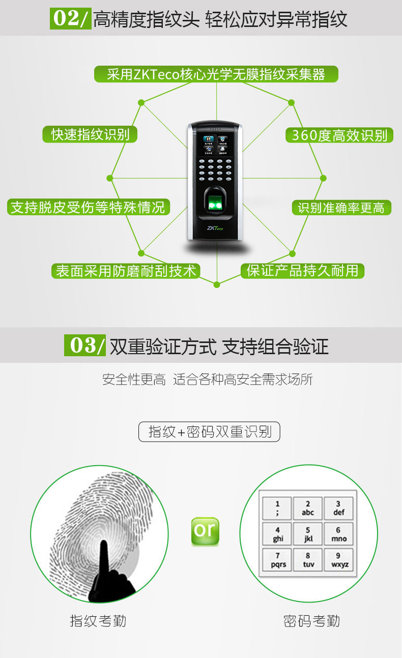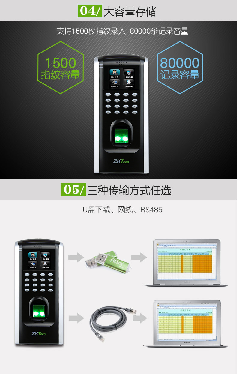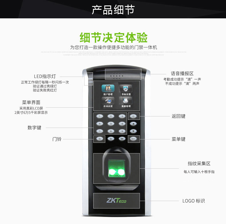 ZKTeco/熵基科技F7PLUS指紋考勤門禁一體機(jī) 指紋門禁系統(tǒng)主機(jī)