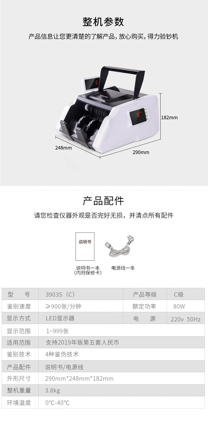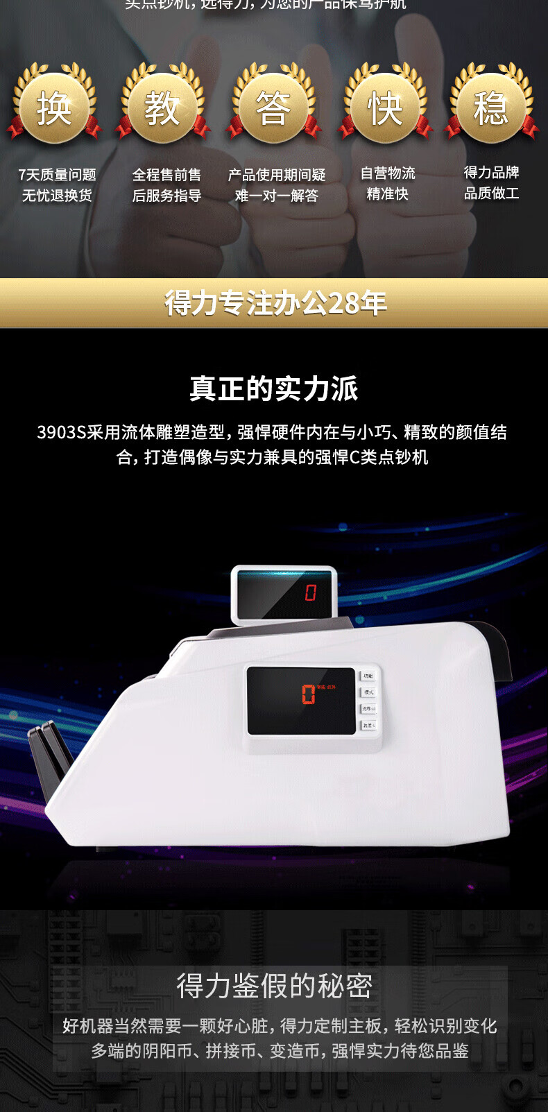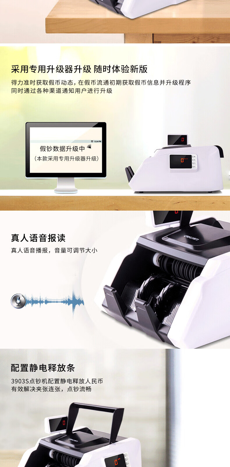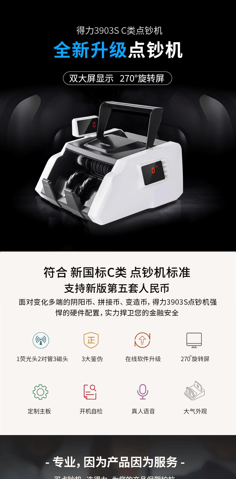 得力驗(yàn)鈔點(diǎn)鈔機(jī) 雙屏語音支持新版人民幣C級便攜商用家用3903S