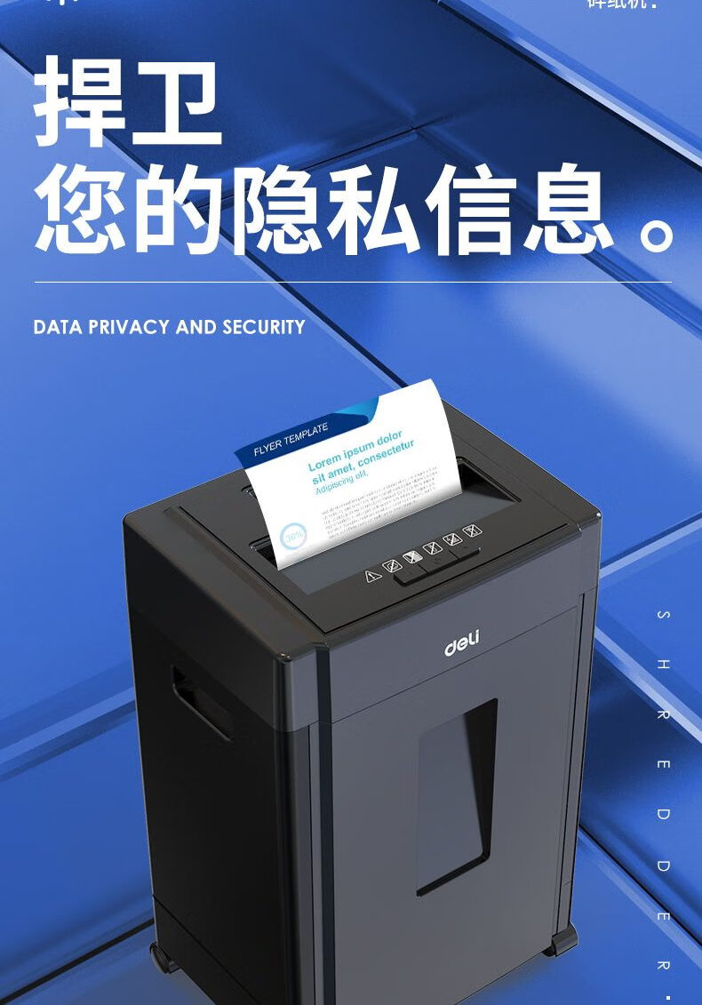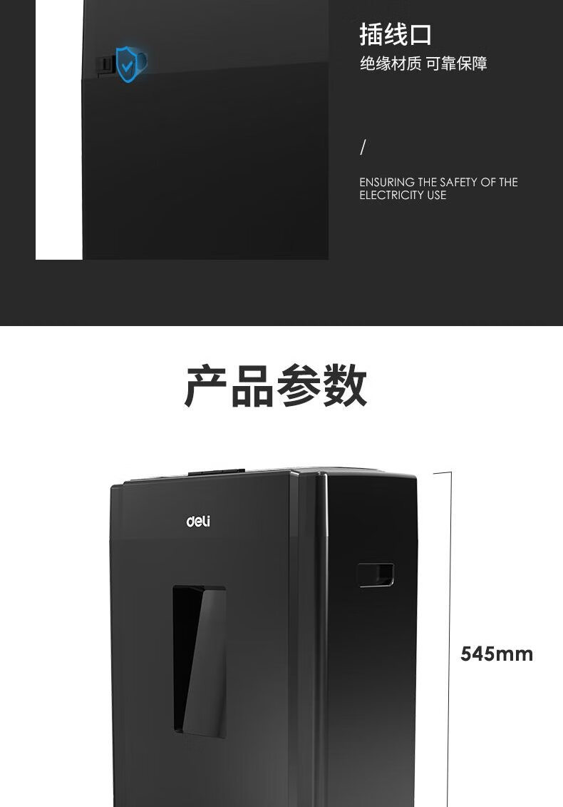 得力9904碎紙機(jī)大容量多功能碎紙機(jī) 高續(xù)航高保密辦公碎紙機(jī) 碎光盤(pán)4級(jí)保密/連碎8張 20L 黑