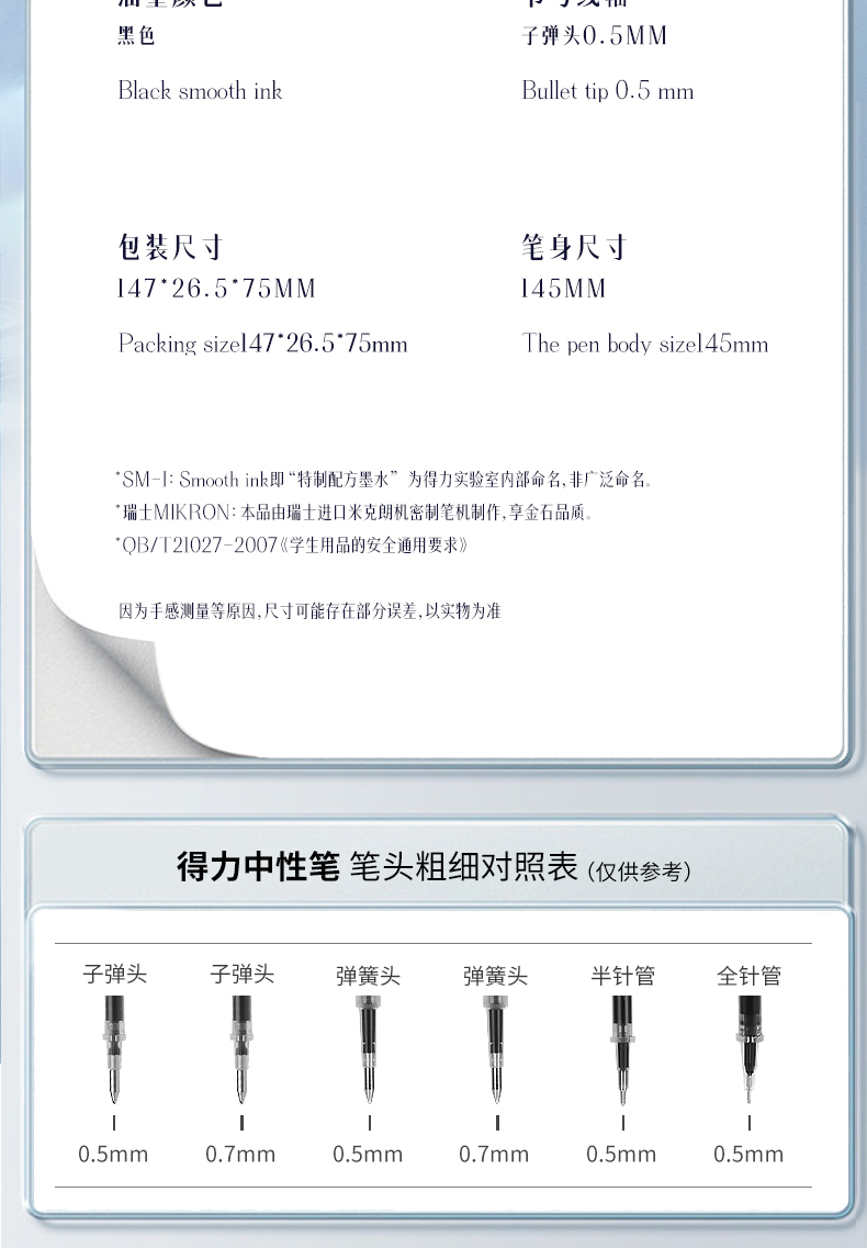 得力(deli)【順滑之星】S08 臻順滑中性筆簽字筆 0.5mm子彈頭按動筆水筆 辦公用品 黑色