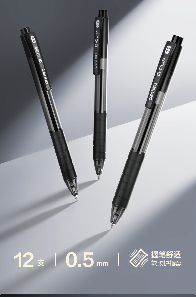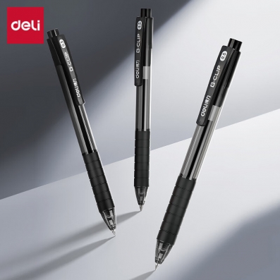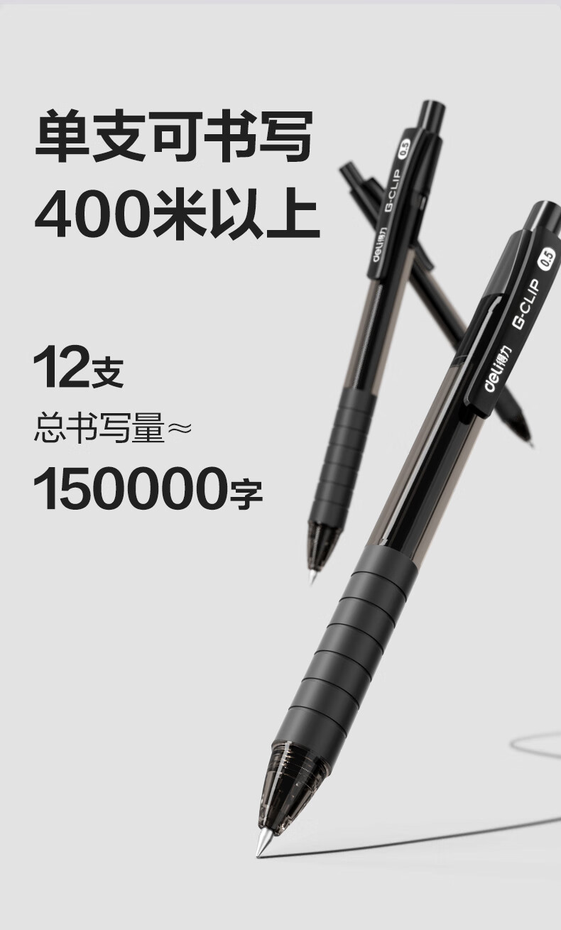 得力(deli)中性筆簽字筆 0.5mm子彈頭水筆按動(dòng)筆 辦公用品 黑色 S06