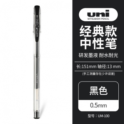 三菱(Uni)UM-100學(xué)生中性筆簽字筆 0.5mm雙珠防漏墨啫喱筆考試經(jīng)濟型水筆(替芯UMR-5) 黑色 計價單位:支