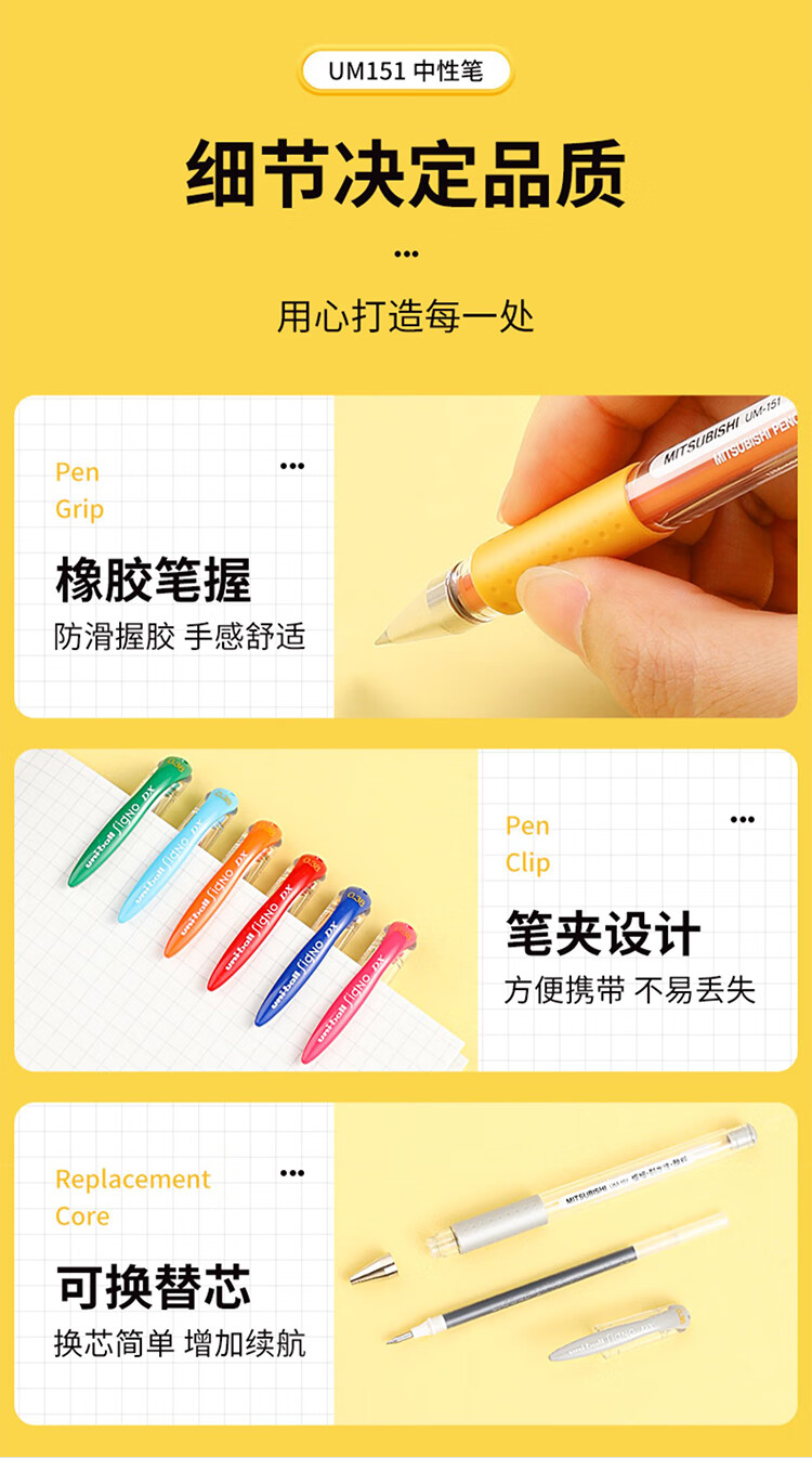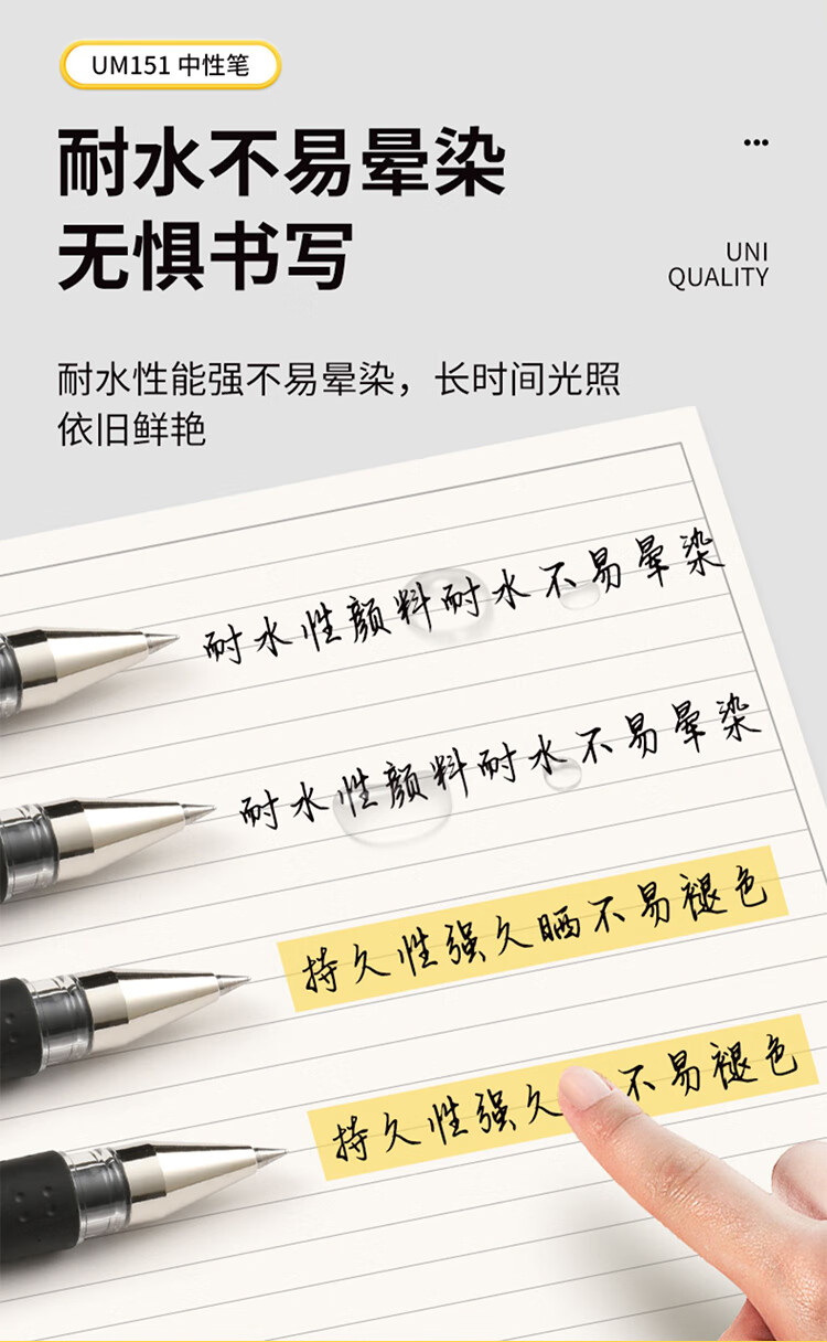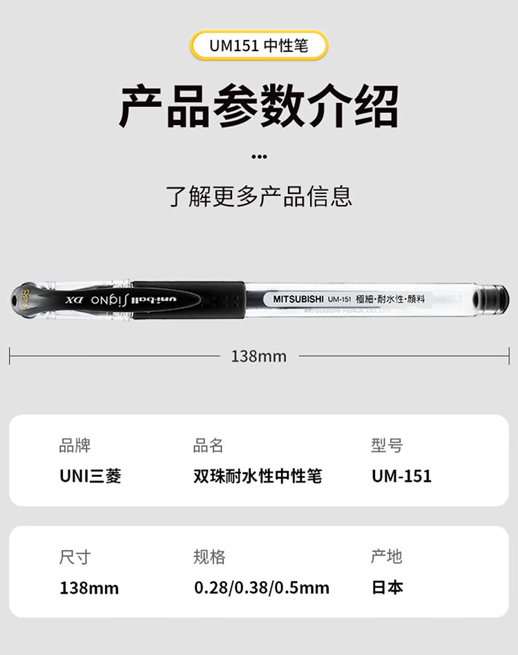 三菱(Uni)UM-151耐水雙珠啫喱筆 0.38mm中性筆財務(wù)簽字筆多色可選(替芯UMR-1) 黑色