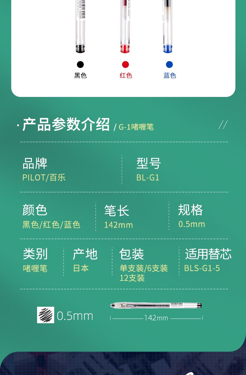百樂(PILOT)BL-G1-5T 子彈頭中性筆 0.5mm啫喱筆水筆簽字筆 學生考試筆 黑色 計價單位:支