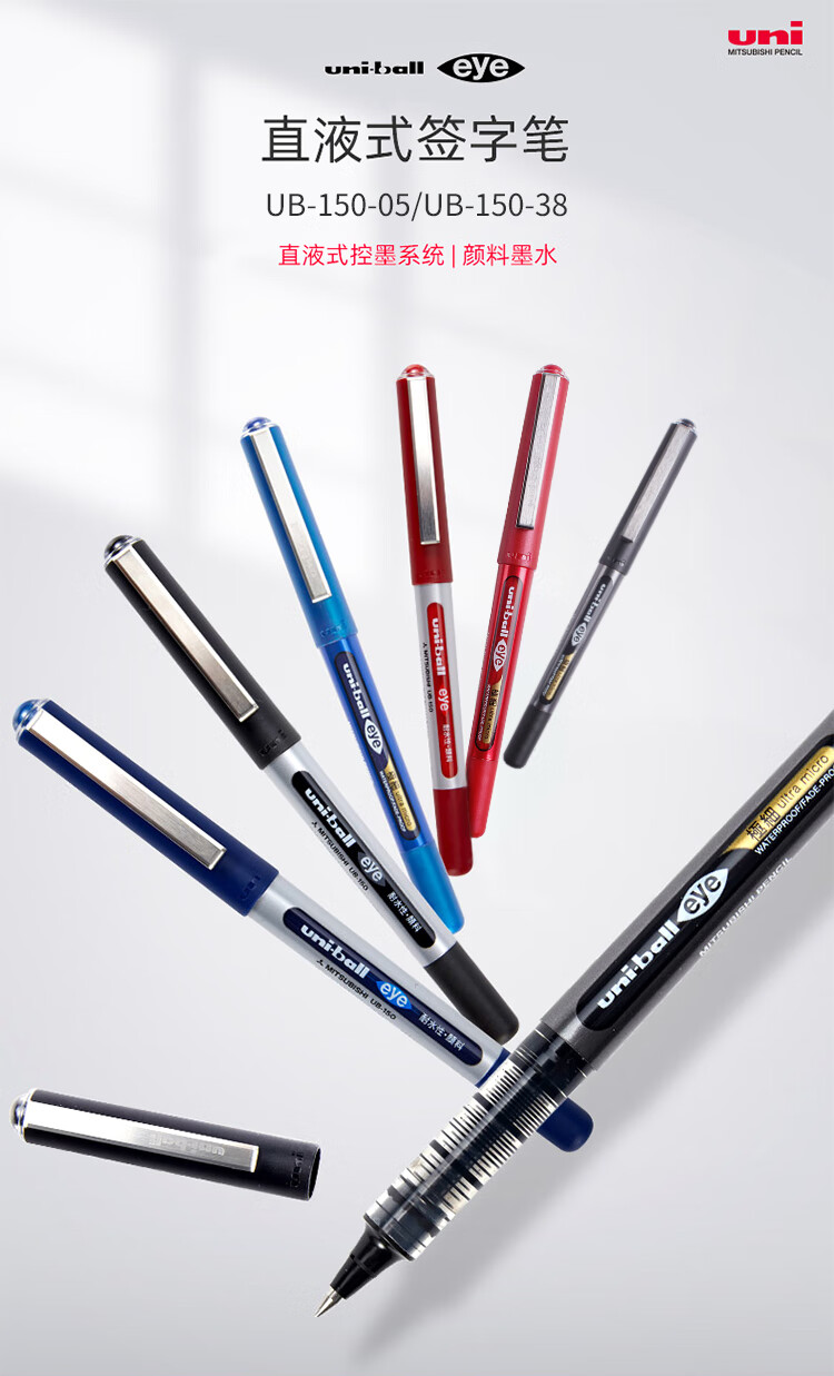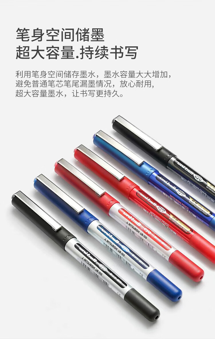 三菱(Uni)UB-150中性筆直液式走珠筆簽字筆 0.5mm耐水防變色考試財(cái)務(wù)用筆 紅色 計(jì)價(jià)單位:支