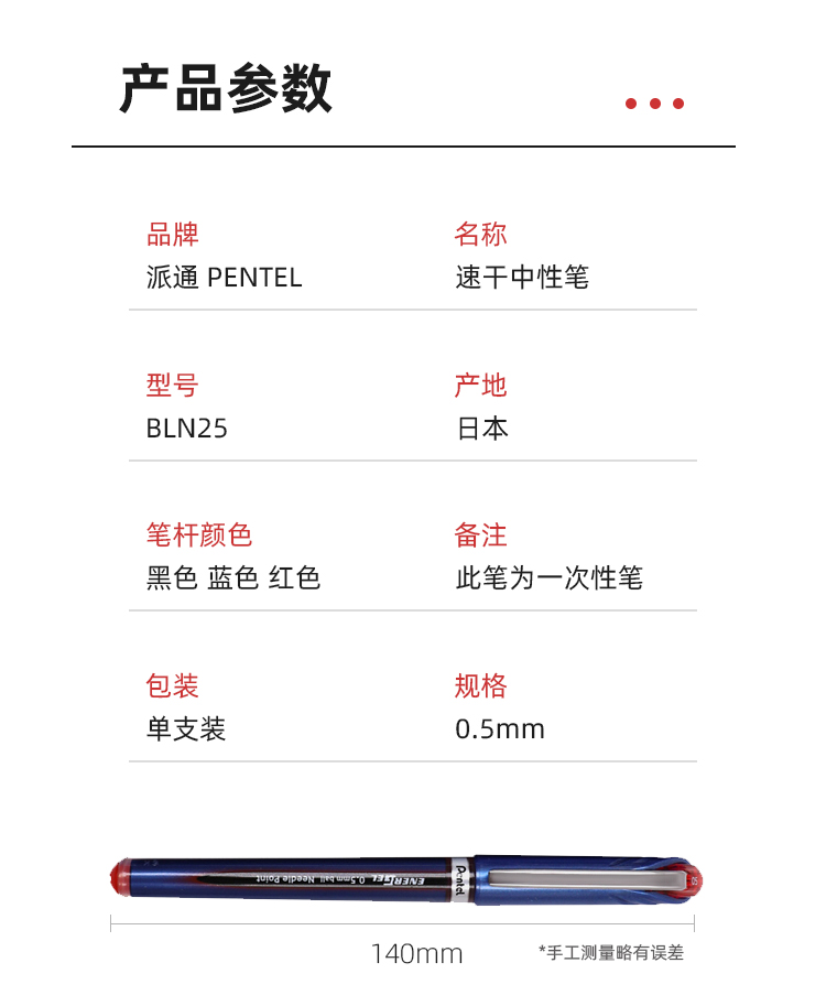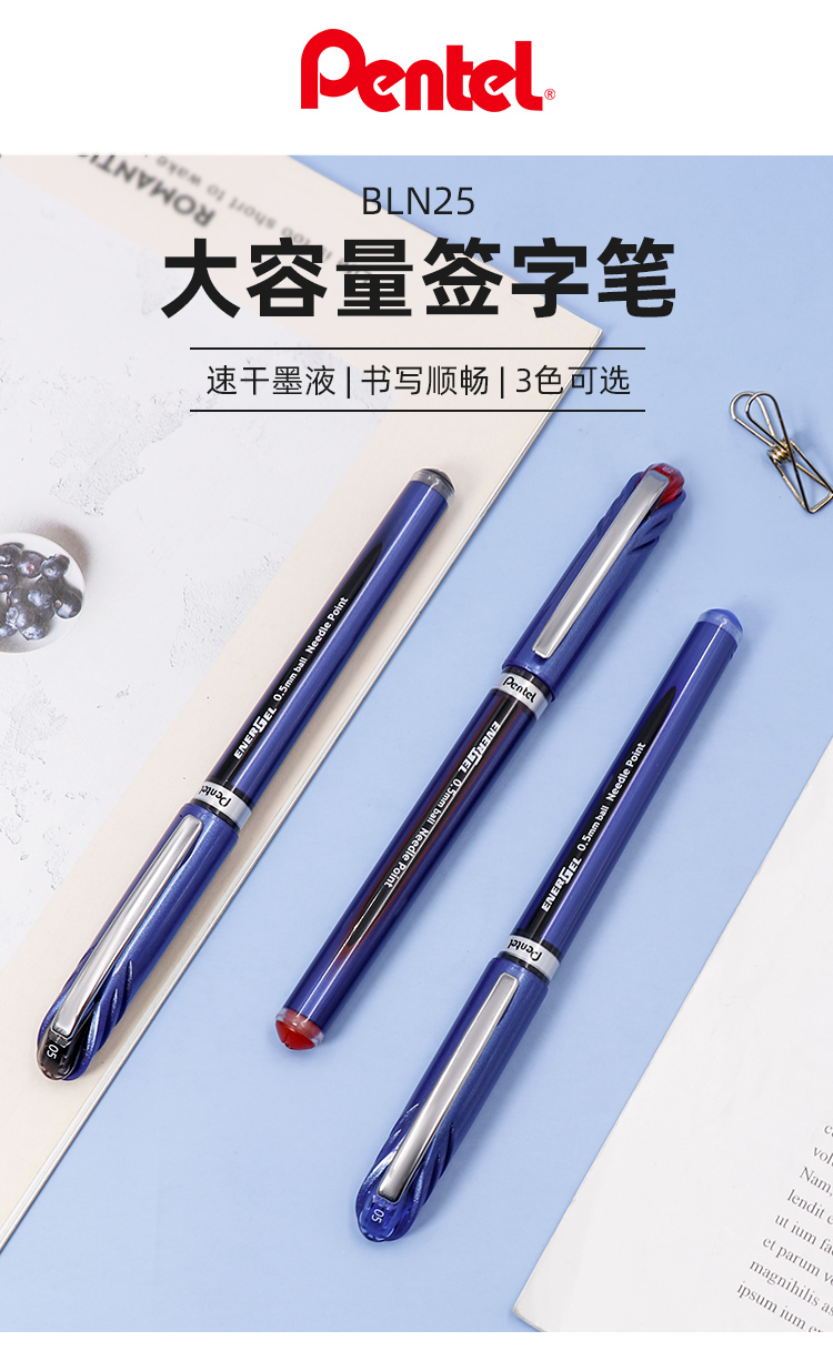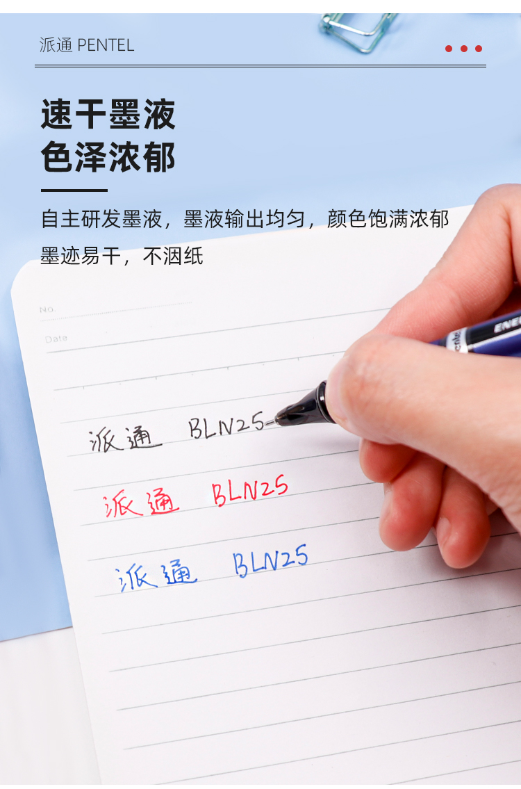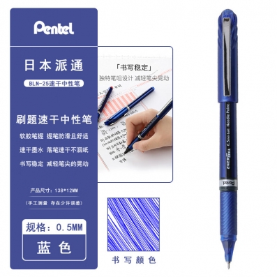 日本Pentel派通BLN25中性筆學生用考試速干水筆0.5大容量簽字筆 藍色 計價單位:支