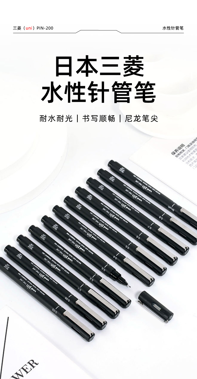三菱(uni)0.1mm水性繪圖針管筆 PIN-200美術(shù)設(shè)計(jì)描邊筆勾線筆 黑色 計(jì)價(jià)單位:支