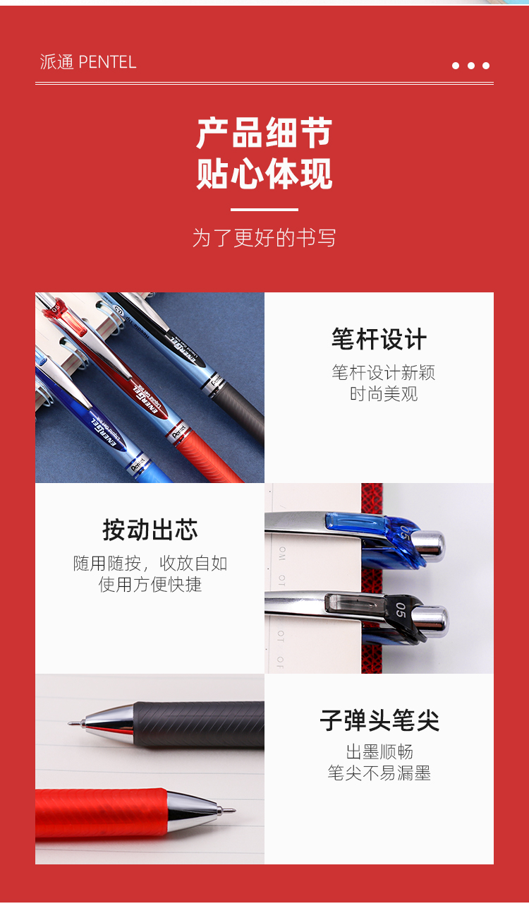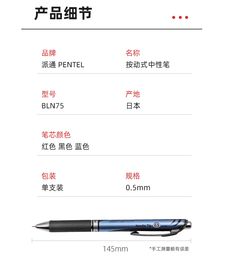 派通(Pentel)0.5mm按動速干中性筆 學生考試簽字筆水筆BLN75 黑色