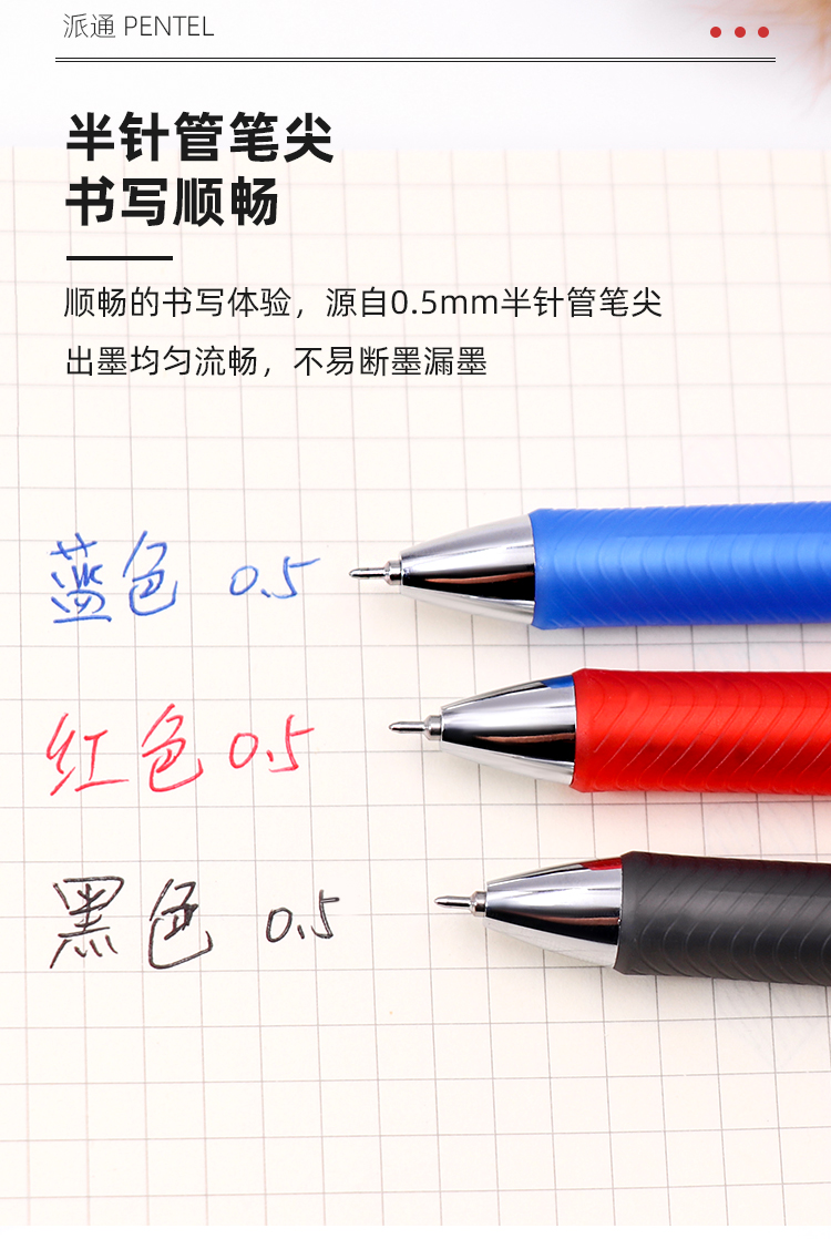 派通(Pentel)0.5mm按動速干中性筆 學生考試簽字筆水筆BLN75 藍色