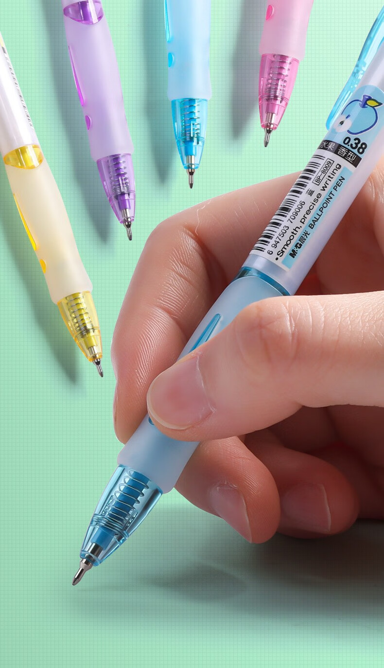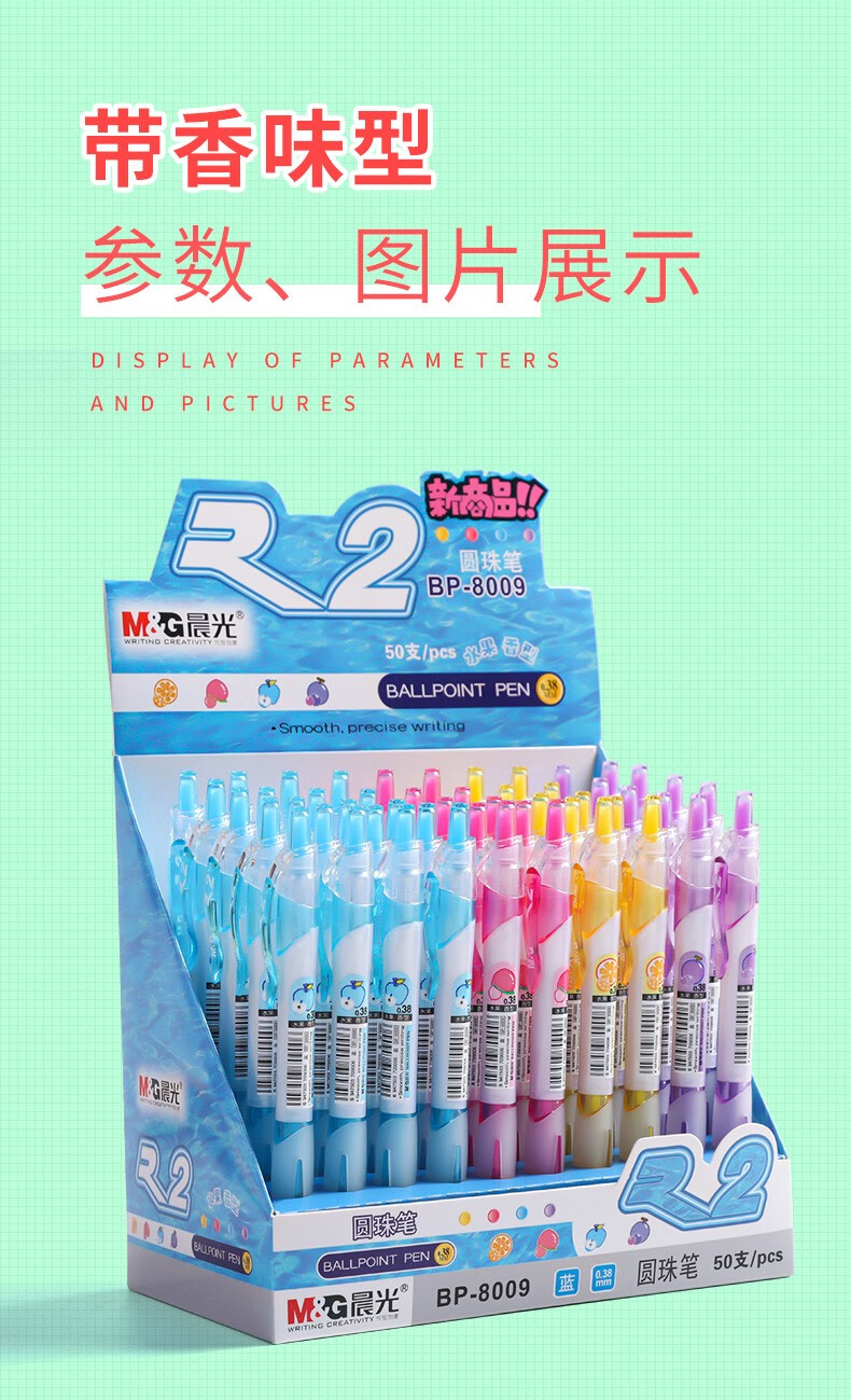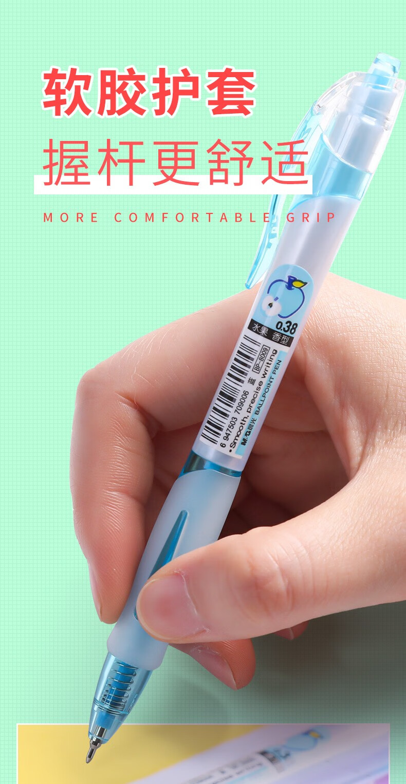 晨光(M&G) 圓珠筆0.38mm極細三年級自動小學生用按動式女可愛少女學生細頭按壓式油筆芯帶香味 BP8009藍色