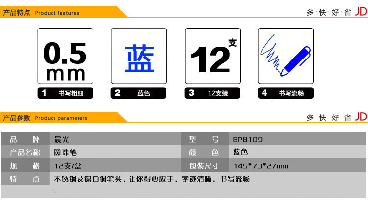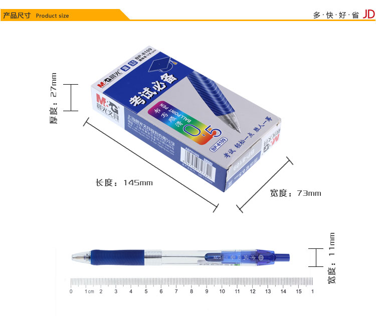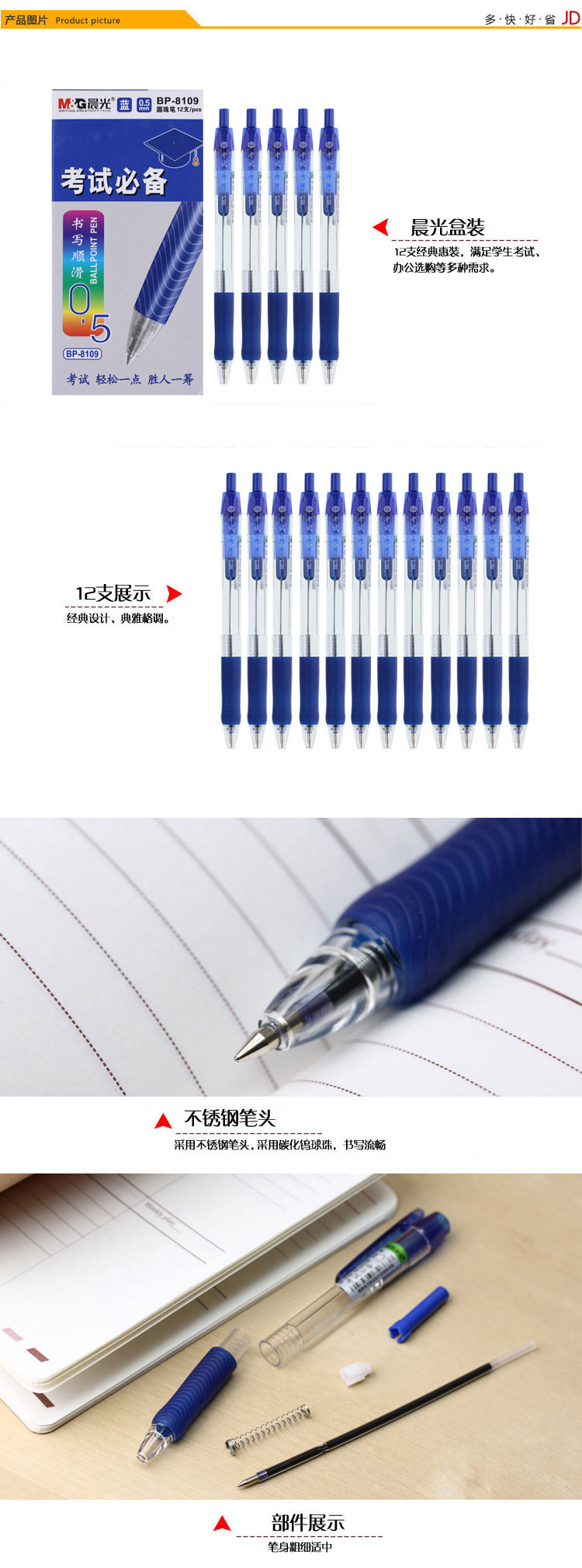 晨光(M&G)文具0.5mm藍色按動圓珠筆 辦公子彈頭原子筆 商務(wù)考試中油筆 BP8109