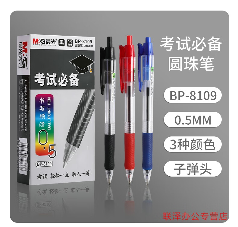 晨光(M&G)文具0.5mm紅色按動(dòng)圓珠筆 辦公子彈頭原子筆 商務(wù)考試中油筆 BP8109