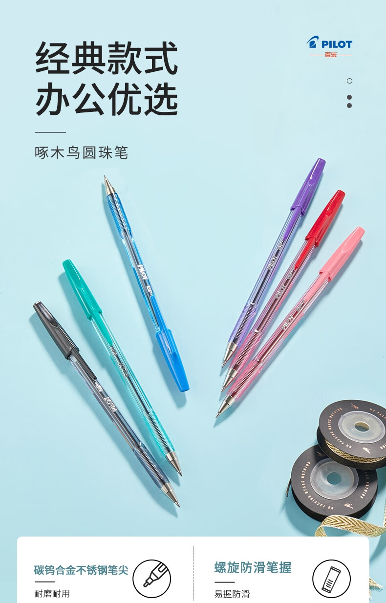 PILOT百樂BP-S-F 啄木鳥圓珠筆0.7MM原子筆學(xué)生中油筆寶珠筆 藍(lán)色