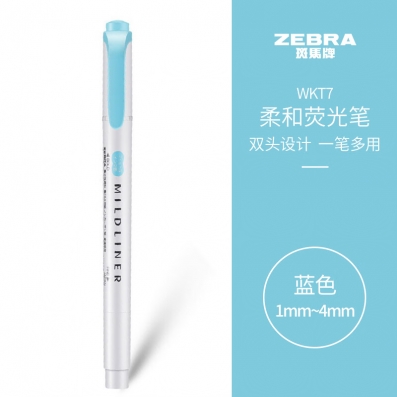 斑馬牌 (ZEBRA)雙頭柔和熒光筆 mildliner系列單色劃線記號筆 學生標記筆 WKT7 柔和藍
