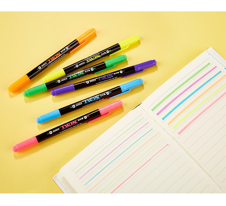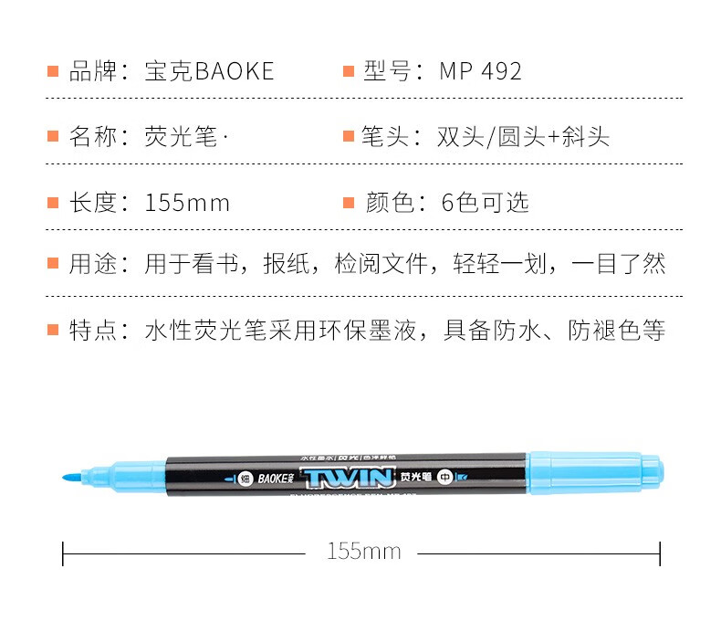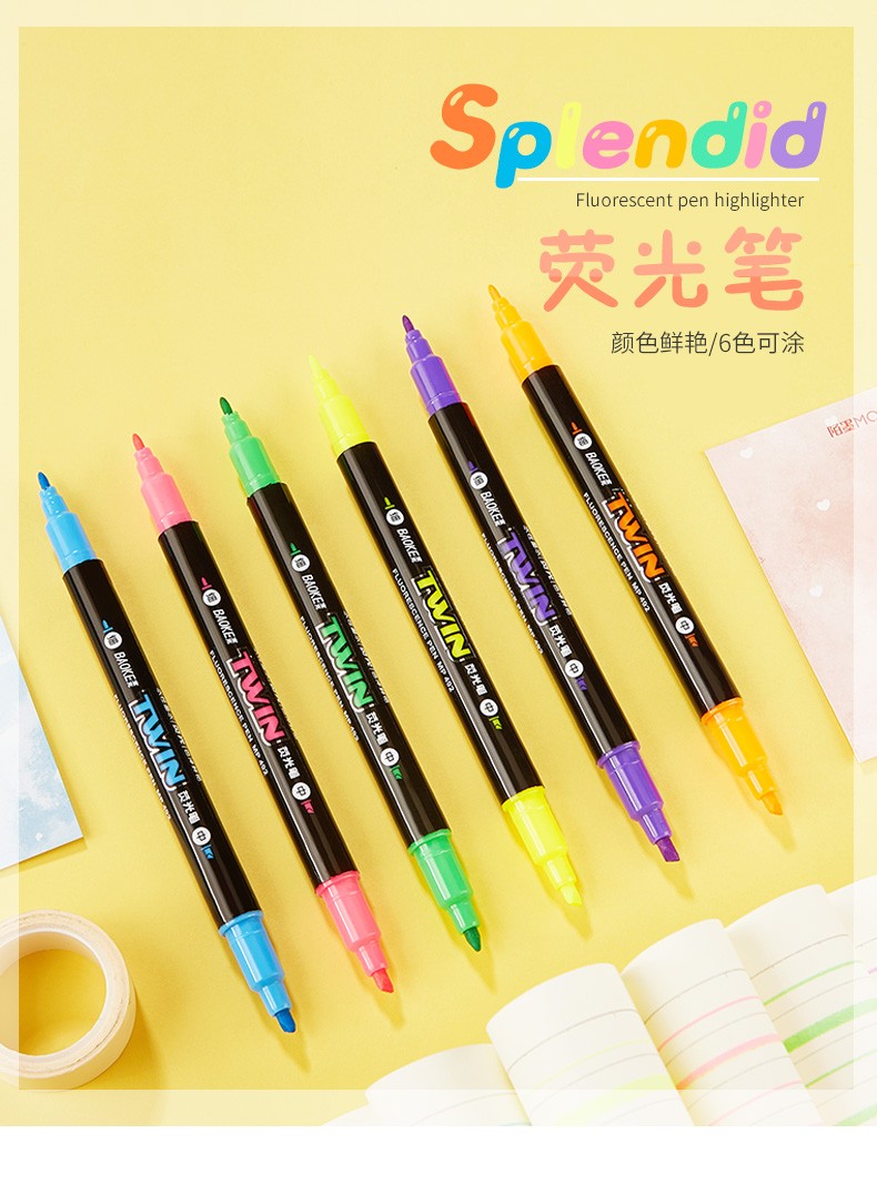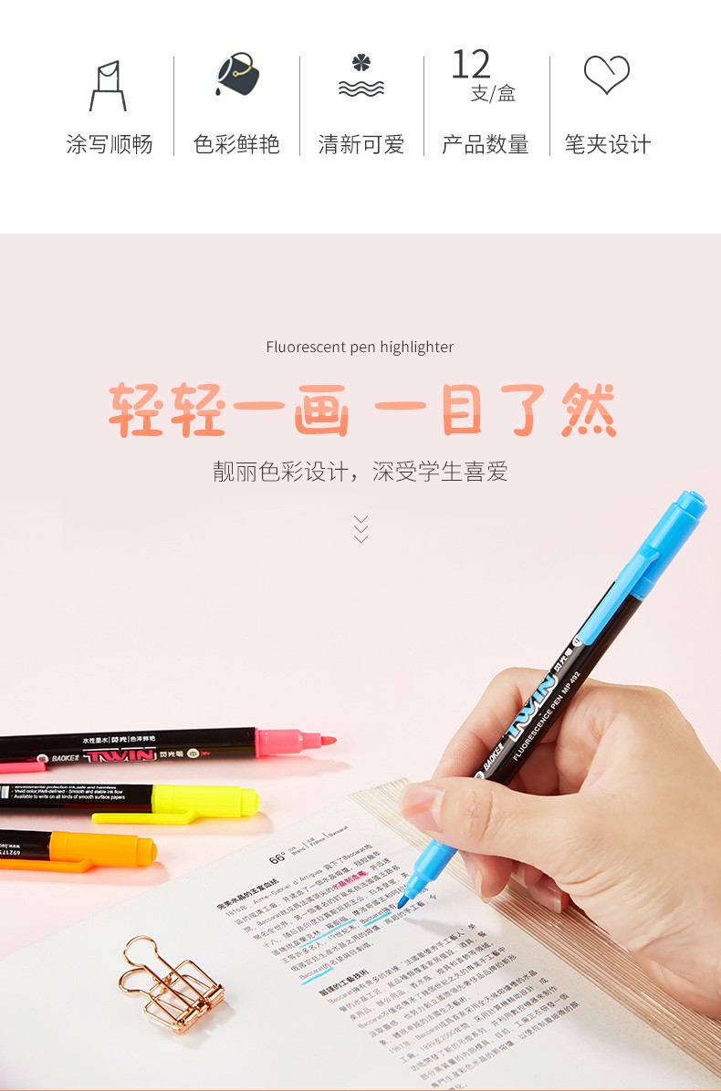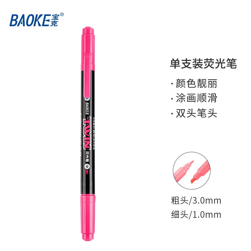 寶克(BAOKE)雙頭熒光筆 學生標記筆記號筆 MP492 粉紅色