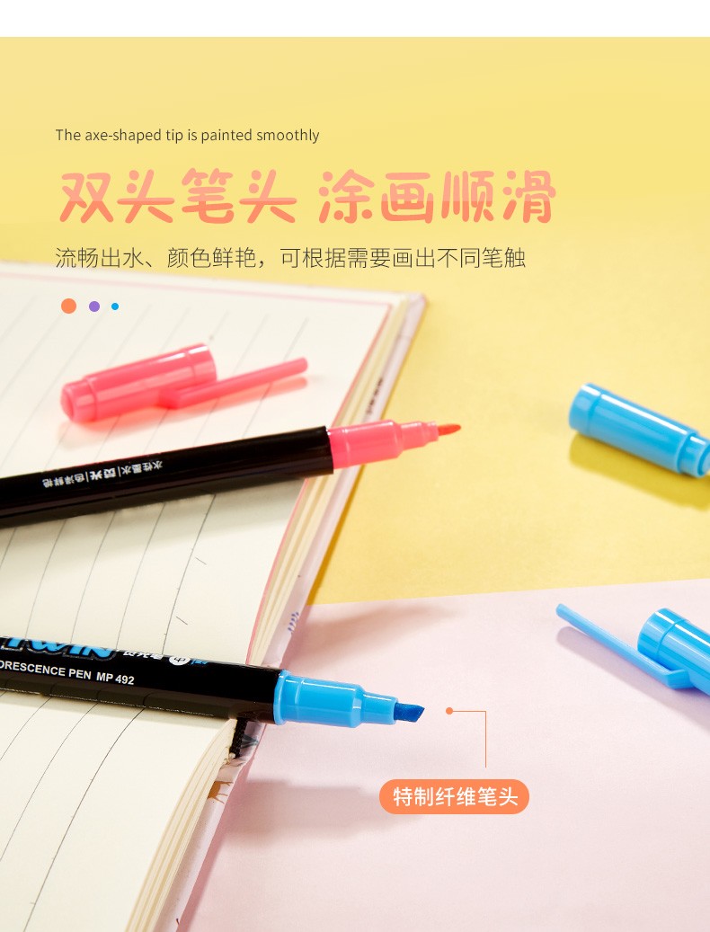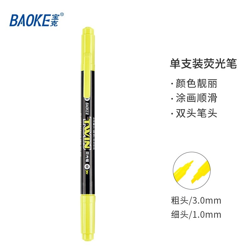 寶克(BAOKE)雙頭熒光筆 學生標記筆記號筆 MP492 黃色