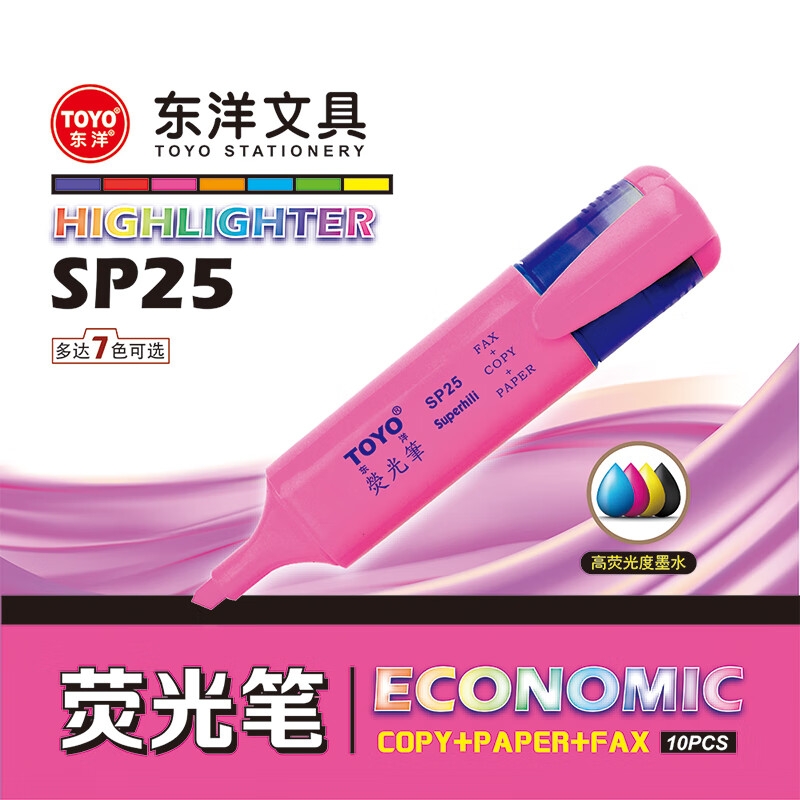 東洋(TOYO)熒光筆SP25簡約大容量彩色手賬標記筆學(xué)生小清新劃重點手賬記號筆文具 粉紅色