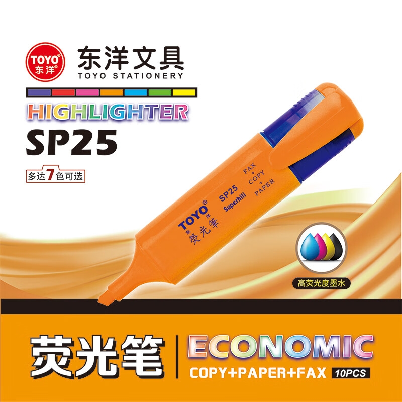 東洋(TOYO)熒光筆SP25簡(jiǎn)約大容量彩色手賬標(biāo)記筆學(xué)生小清新劃重點(diǎn)手賬記號(hào)筆文具 橙色